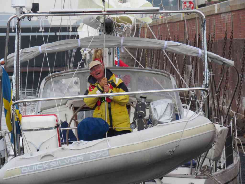 Vi väntade på att det skulle gå 14 dagar efter sista vaccinationen för att slippa karantän och betala covidtest för att komma in i andra länder. Vad gjorde vi under tiden… Jo, vi fixade några saker som fanns på att göra listan, vi beslutade att vi målar överbyggnaden och väder prognosen sa att det skulle bli mycket varmt. Vad kunde vi vara där det fläktar, vi seglar till Ven. Vi var på Ven några dagar och så klart missade vi att ta några kort. Men det blev i alla fall ett kort på en mycket trött men nöjd man. Det blev grillning och en härlig kväll.