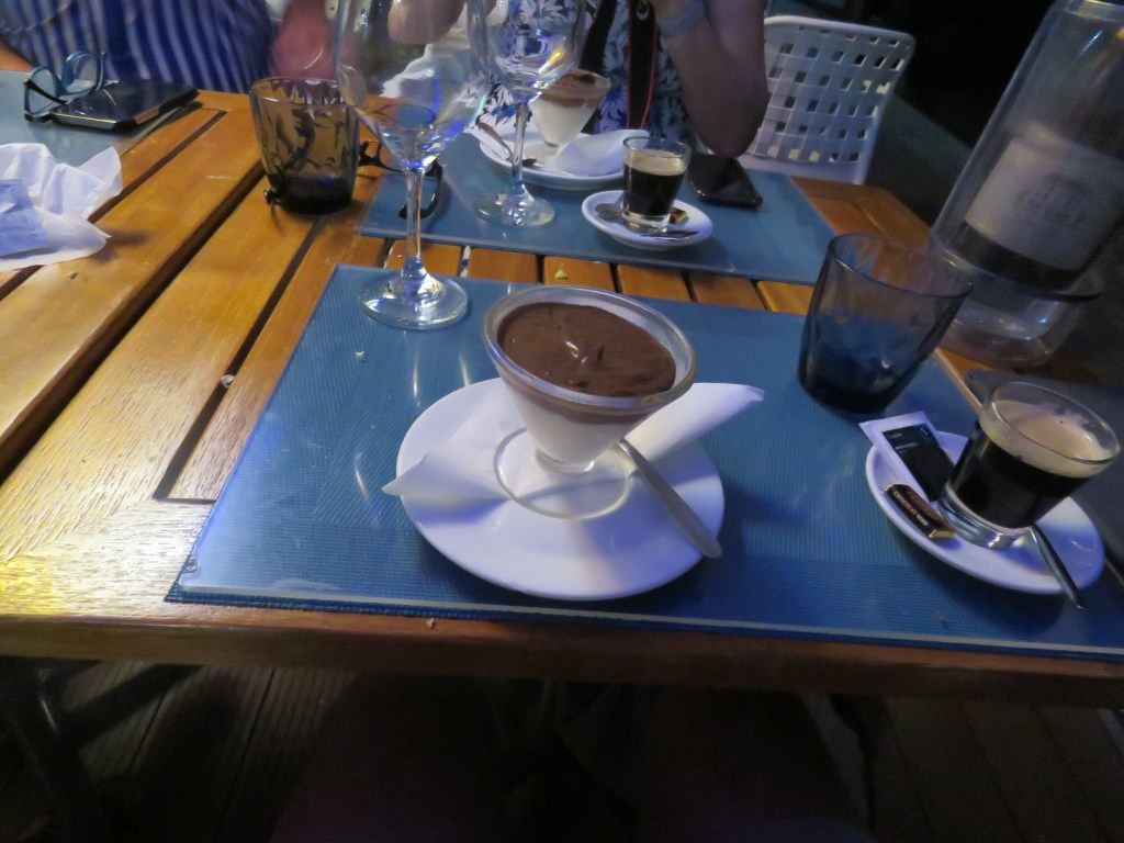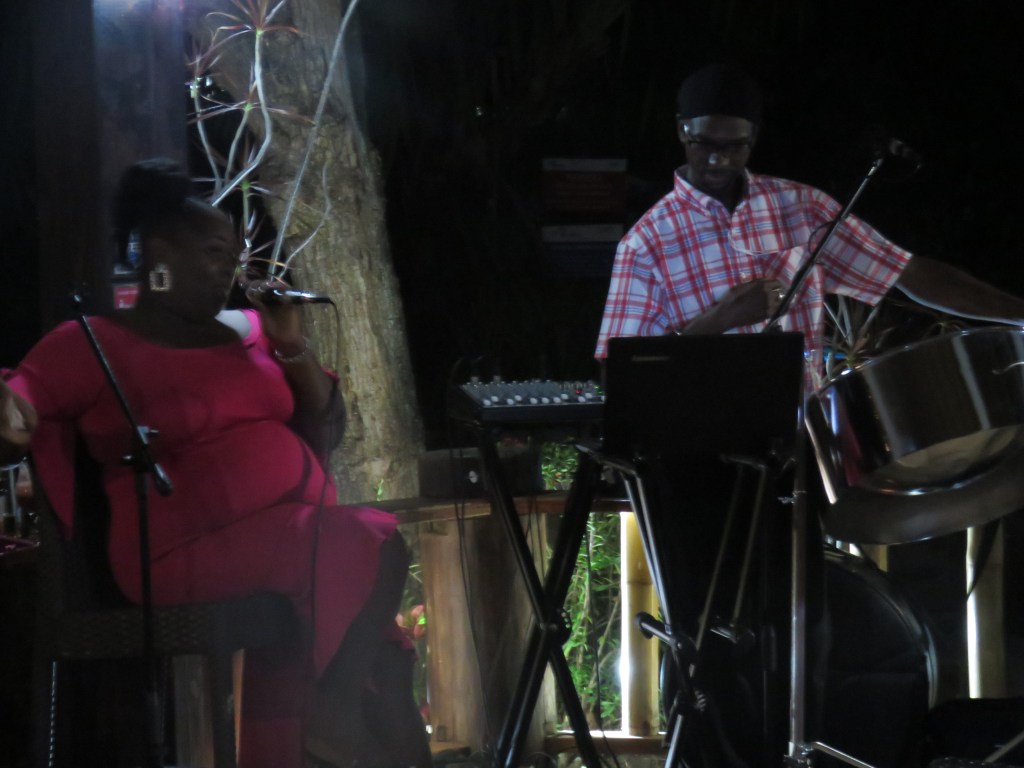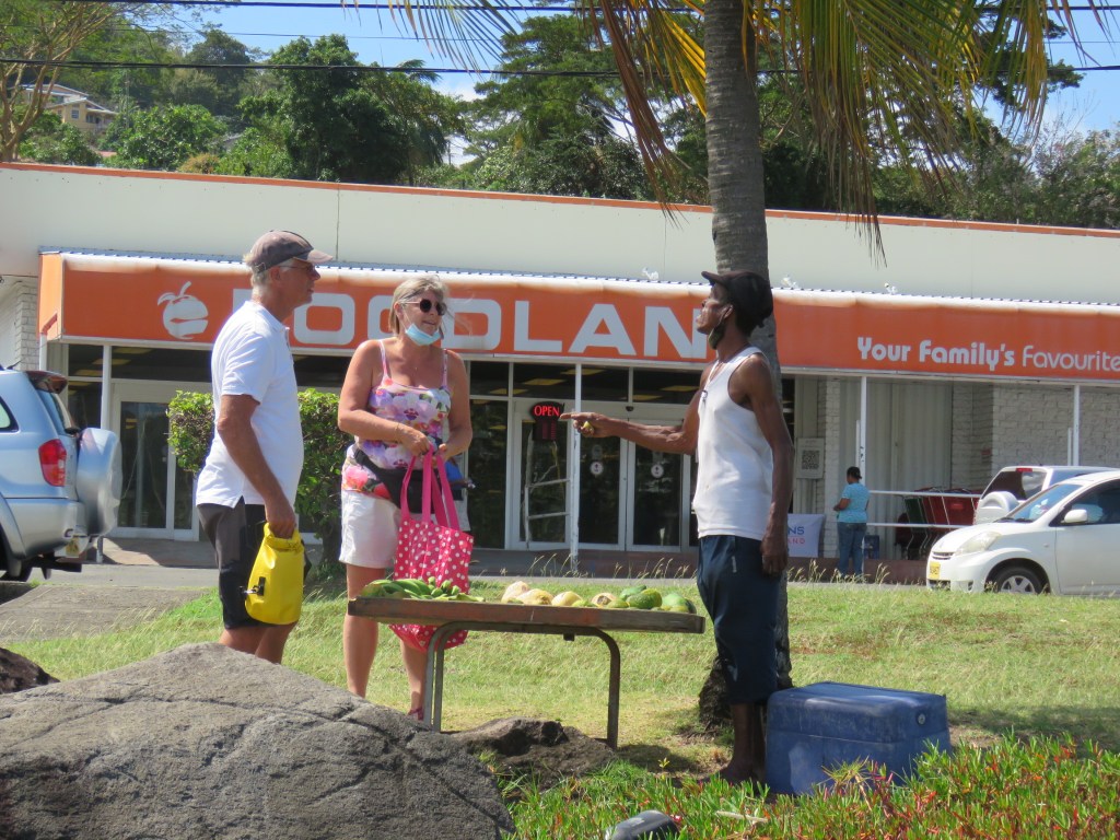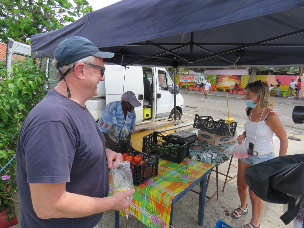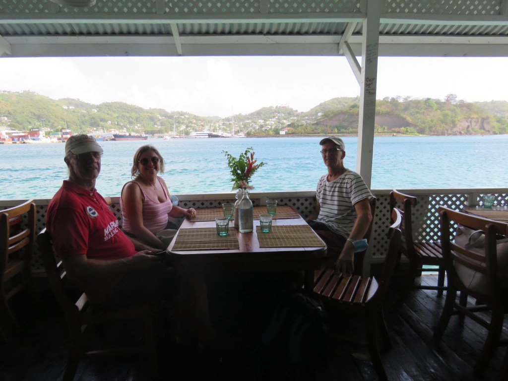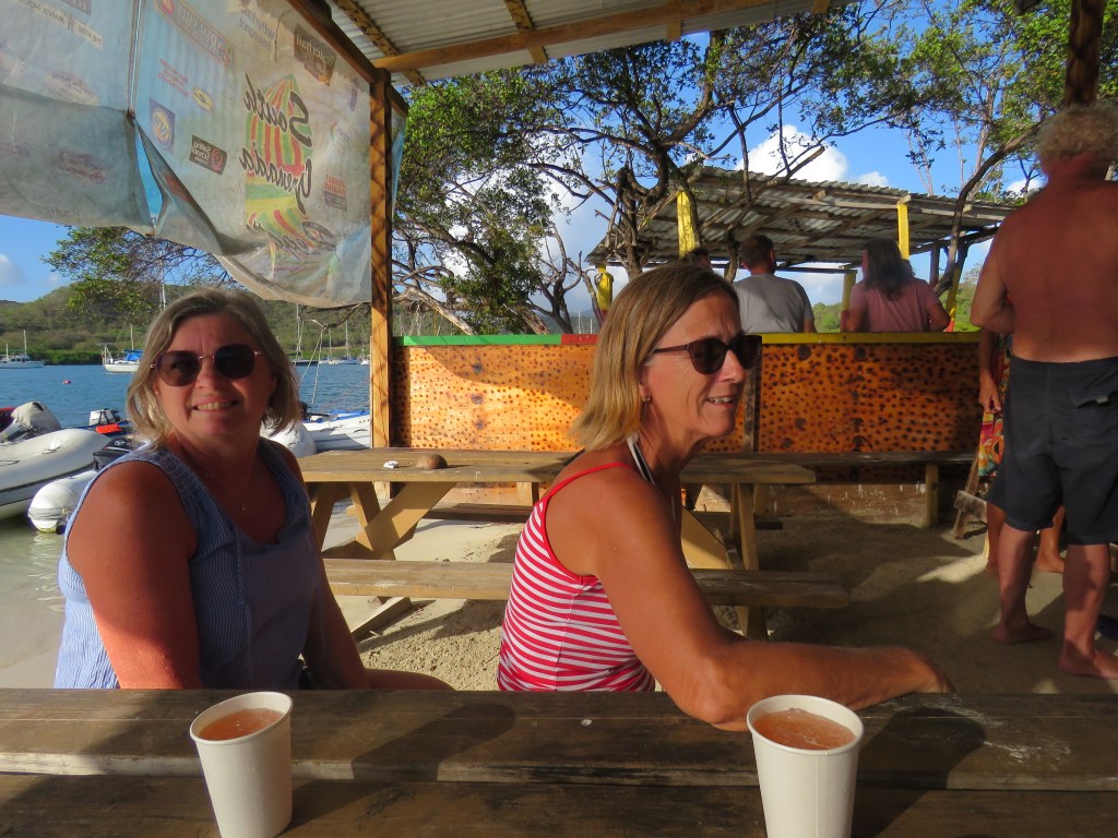 Vi gick tillbaka på söndag och la oss på svaj utanför hamnen Port Louise och på kvällen åkte vi in till marinan och baren där vi kunde få gratis WIFI och kunde ringa hem. Det var mycket dålig täckning i viken innanför Hog Island. Måndag fick vi gjort PCR testet och därefter seglade vi till Tyrrell Bay, Carracou. Där kunde vi klarera ut oss och vi hade bett att vi skulle få resultatet till Peters mejl. Tyrell Bay var också en liten charmig by med lite barer och restauranger. När vi var här förra gången för 5 år sedan låg vi en kort stund i Tyrell Bay för vår värdinna Andrea bor här och skulle hämta lite kläder som hennes man kom ut med. Vi hade hyrt Andrea 1 vecka för att få tips med matlagning och inköp. Andrea gav oss också tips om vilka öar som var värda att besöka. När vi var på restaurangen så frågade Carina tjejen som serverade oss om hon visste var Andrea bodde och det visade att Andrea bodde mitt emot tjejen och hon visade oss också vägen. Vi gick till Andreas hus och knackade på, hon öppnade och tittade på oss. När vi förklarade för henne vilken båt hon hade träffat oss på, så sken hon upp och just då var hon upptagen men kommer vi tillbaka så var vi välkomna att besöka henne igen. Det är inte lätt att komma i håg alla människor på alla båtar som hon har arbetat på. Det var jätte kul att träffa Andrea. Här i Tyrell Bay strosade vi och var på restaurang.