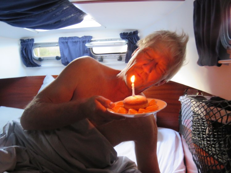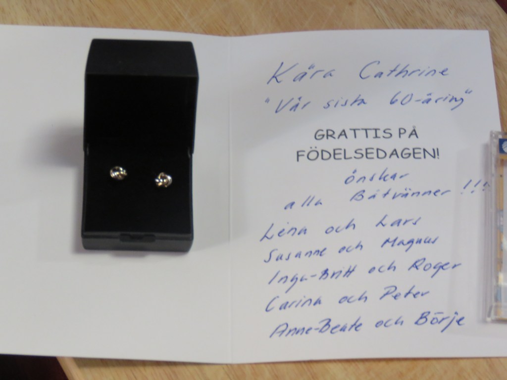 Vi kastade loss vid lunch, söndag den 13 mars till Terre-de-Haut. Vi kom fram på morgonen, måndag 14 mars, klockan 7:30. Det blev 77,3 NM. När vi, jag och Börje hade vårat pass det var kväll och mörkt, vi gick för motor utanför Dominicas kust och vi kom söder i från så såg vi en båt längre fram som hade röd lanterna, babord den går säkerligen västerut sa vi, båten hade ingen AIS. Börje styrde mer in mot land för att visa att vi hade sett båten. Vi började närma oss mer och mer det är något som inte stämmer reflex mässig tar Börje tag i ratten och styr undan åt babord, vänster. Det var en större båt och vi funderade länge och sa nästa i korus hade inte båten den röda lanternan på fel sida. Man har sett många båtar som inte är tillräckligt utrustade för att gå i mörker. När vi kom fram vilade vi en stund och senare på dagen åkte vi in och åt lunch på baren där vi även fick WIFI. För här fanns det ingen täckning. Vi beslöt att vi skulle vara här till på torsdag den 17 mars. Vi gjorde utflykt till Fort Napoleons det var mycket varmt men det var värd alla steg, vilken utsikt. Vi utforskade Terre-de Haut gata upp och gata ner det var en genuin typisk liten turist by med charm. Vi alla tyckte om Terre-de-Haut. Här blev jag firad min 60-års dag från morgon till kväll. På morgon kom gänget in med sång , ballonger och kaka med ljus och dom hade fixat hotell frukost, äggröra, bröd, frukt mm. Vi tog promenad med lunch och avlutade lunchen med en drink på baren bredvid dinge dock. På kvällen blev vi firade våra födelsedagar av ABB med restaurang, Lobster och efterrätt en mycket mysig, fin kväll. Tack ABB. Jag fick så mycket fint, grattis hälsningar från alla håll och kanter de värmde gott i hjärtat. Från båtvännerna fick jag ett par jätte fina örhängen. Vilka härliga, mysiga vänner som fixar och donar till mig som är så långt borta. Min käre make fick jag en jätte fin klocka. Champagne från vännerna Claes och Anna. Tack så mycket till er alla. Allt var så fint och jag kunde inte önska mig mer.