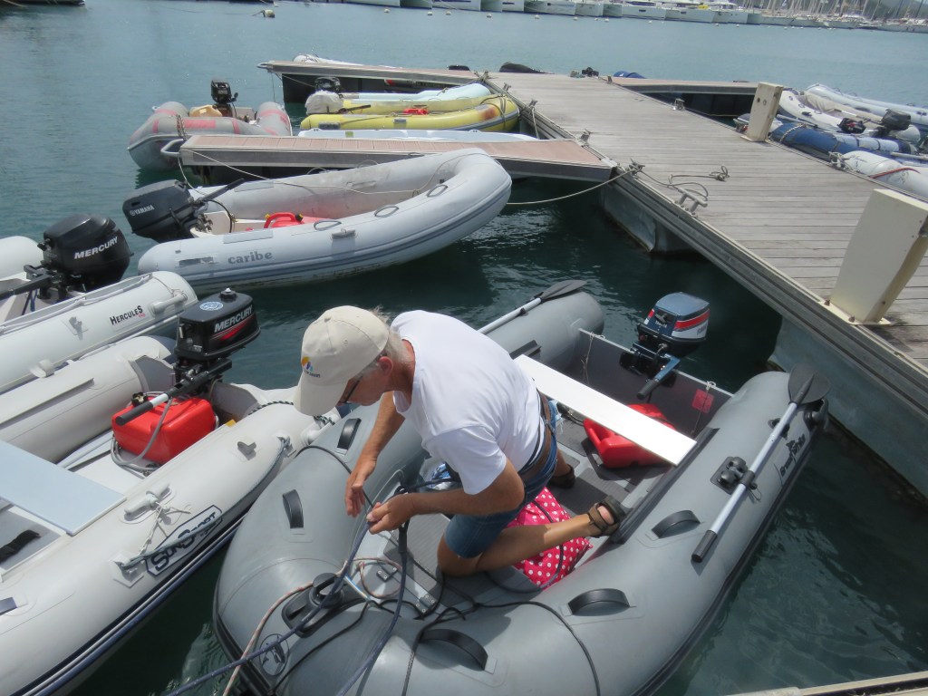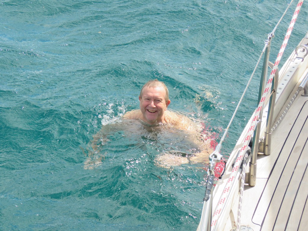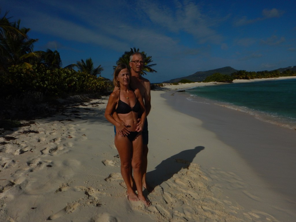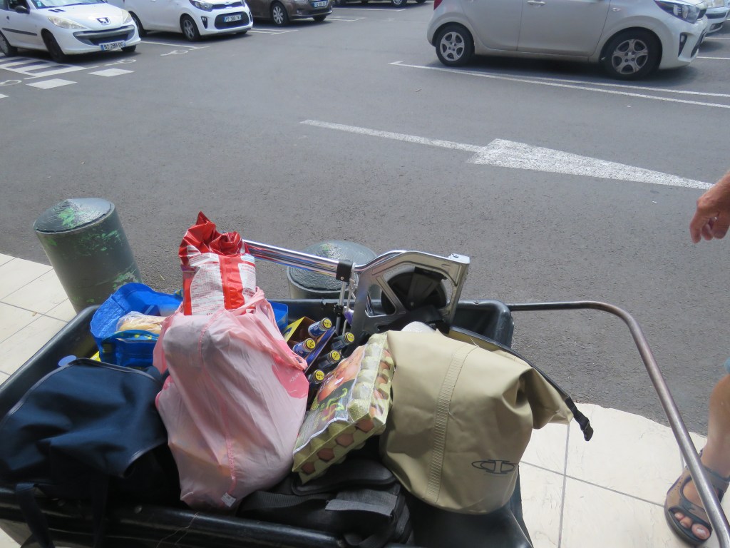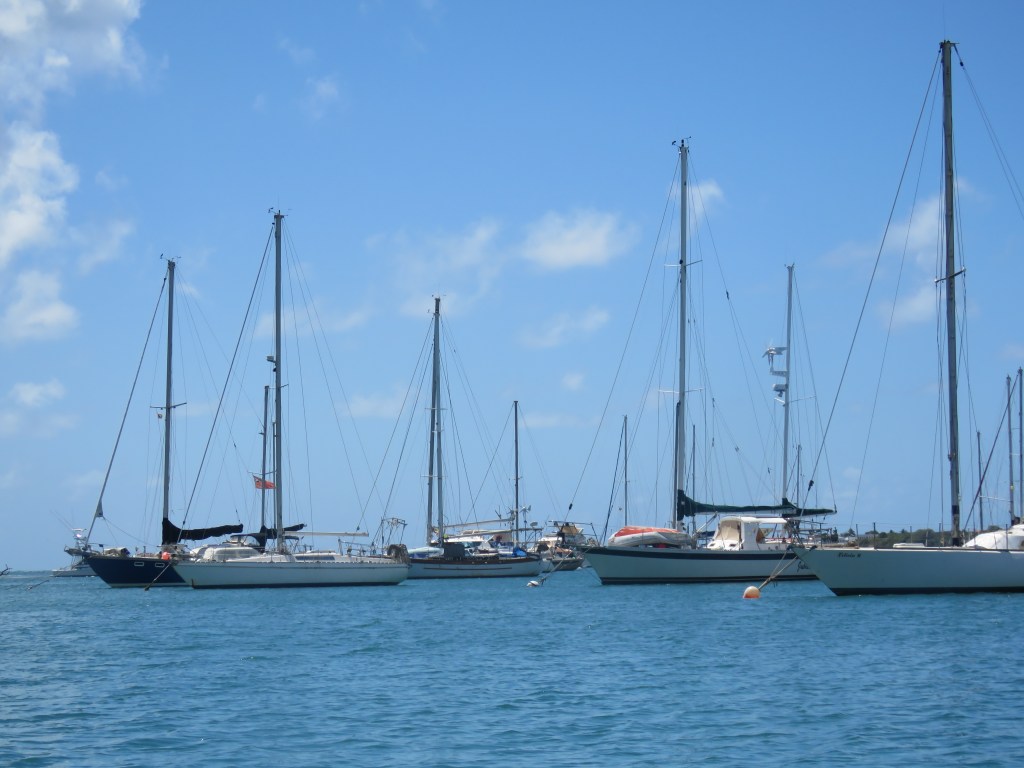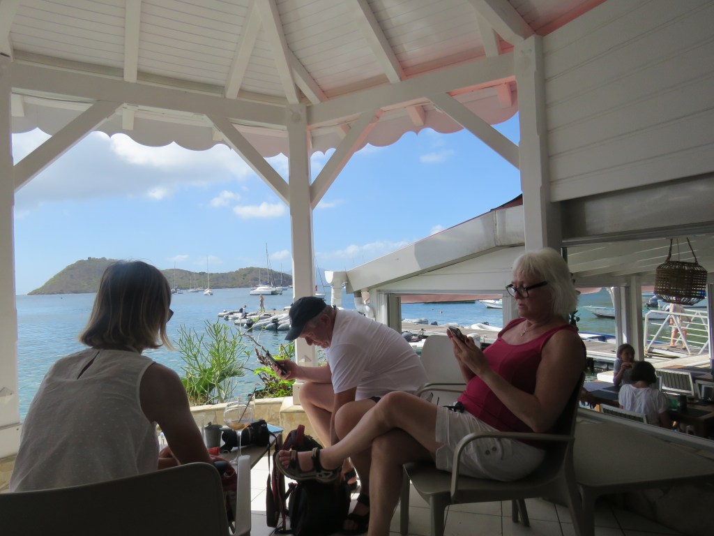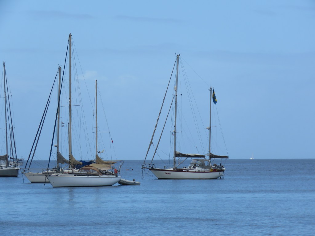 Vi var kvar i bukten ca 10 dagar för vi skulle hitta kapellväv till att sy ett skydd för Inger, dingen, kolsyrepatroner till Sodastreamen, Gasol, Segelmakare som kunde sy sömmarna, för tråden hade ätits upp av solen på Genuans (seglet som är längst fram) UV skydd. Vi letade på Googles Maps, på nätet och med hjälp av våra fötter så fann vi allt vi behövde. Det gick åt mycket glass pengar. Check på listan!! Mataffären hade vi funnit. Nu förstod vi hur bortskämda vi är, hur lätt det är att finna allt hemma det skulle bara ta några timmar. Här tog det flera dagar. Det var även svårt att finna någon som kunde engelska det var bara franska även de yngre kunde inte engelska. Vi fann även Laundry och fick tvättat alla säng kläder. Lars fick klippt sig för nu var frisören ledig, alltså jag. Det var tofs varning. Segelmakaren var en mycket trevlig man och mycket stolt över sitt hantverk han visade oss vad han hade gjort med ett stort leende. När vi hade fått tillbaka vårat segel åkte vi rakt över bukten till Anse Mitan. Här har vi kombinerat med att vara duktiga, betat av på To Do listan, botten är ren tvättad, bloggen är skriven, kyl och frys är av frostad, sittbrunnen är skurad det låg mycket gott under durkarna. Lars har börjat sy Ingers skydd och det är inte lätt att få till alla delar men det kommer bli jätte bra och fint mm. Såklart har vi badat, snorklat och varit på restaurang inte bara slitit. Nu är vi redo att upptäcka ST Lucia.