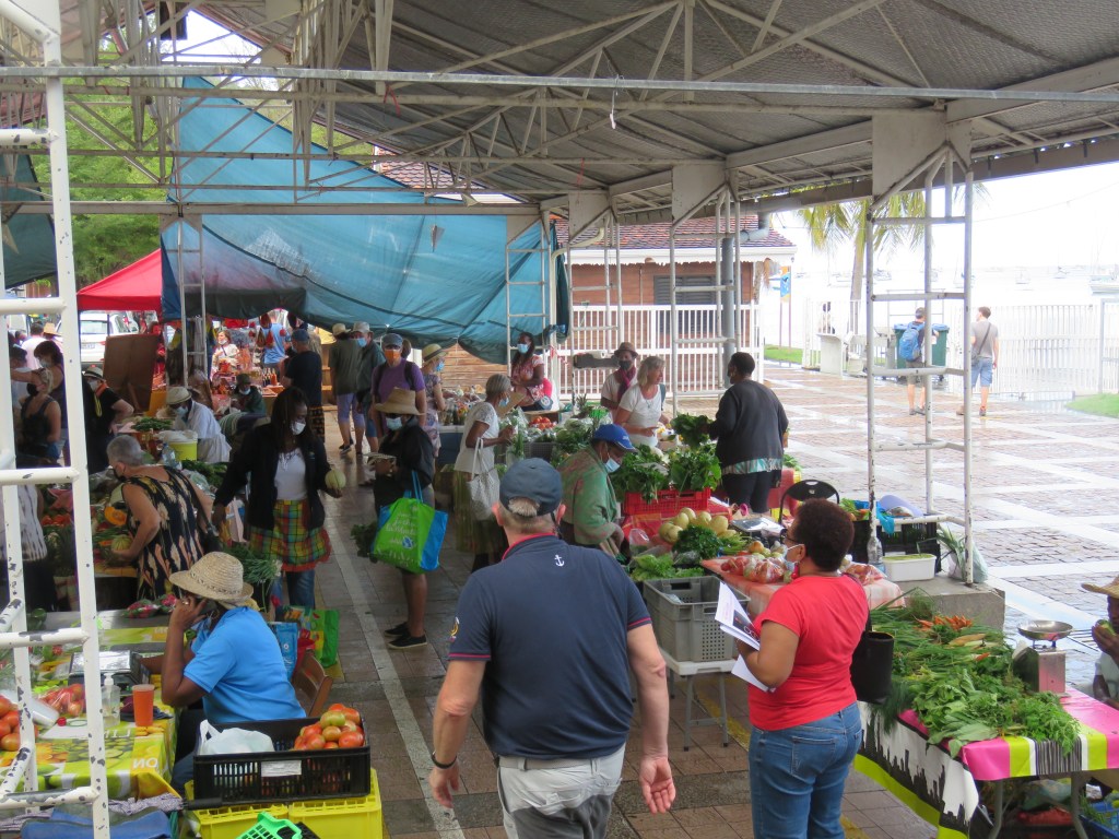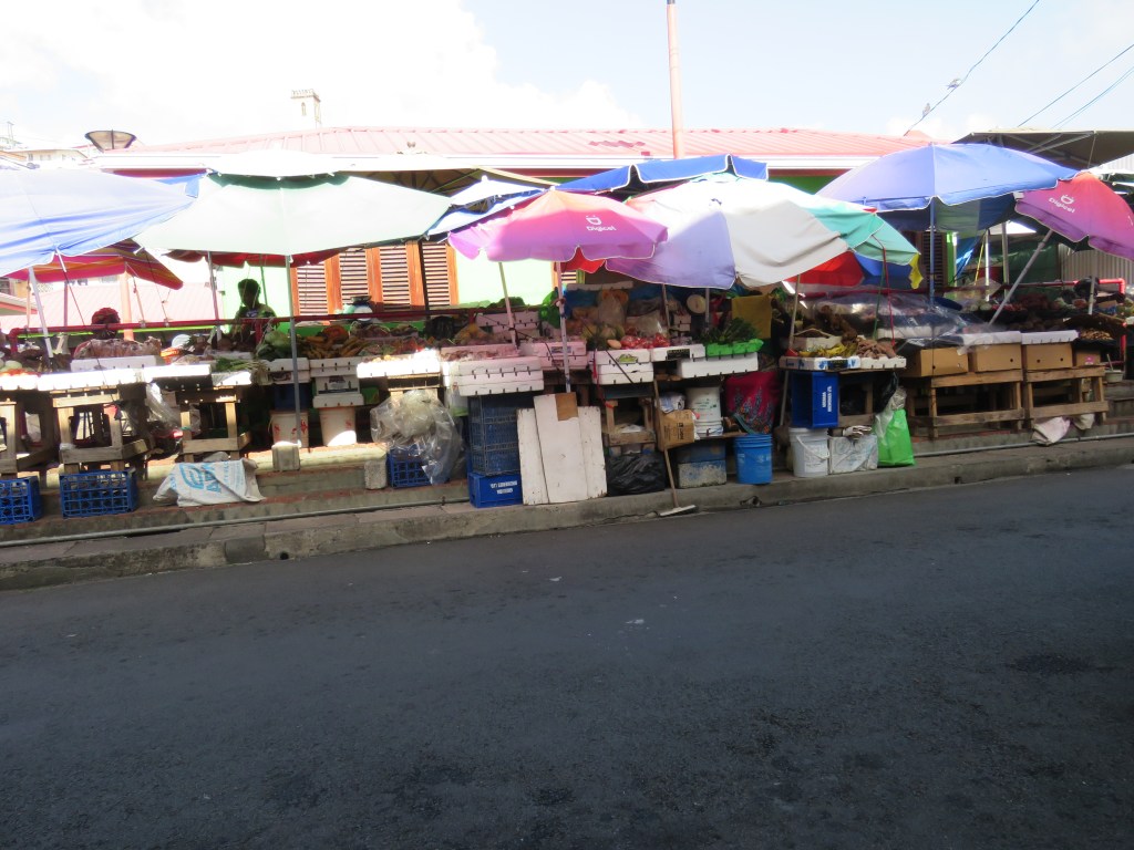 Vi frågade ABB vad dom ville göra och se som svar fick vi, bada, snorkla, fira våra födelsedagar, äta och dricka gott och vara tillsammans. Vi stämde in det var inte svårt att uppfylla. Vi bestämde att vi skulle gå till en ö söder om Guadeloupe, Terra-de-Haut med ett stopp i ST Pierre på Martinique. Här är några bilder från ST Pierre det är också en liten fin by med härlig marknad med kött, frukt, grönsaker, fisk, Krims krams och mycket mera.