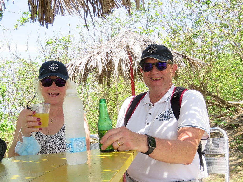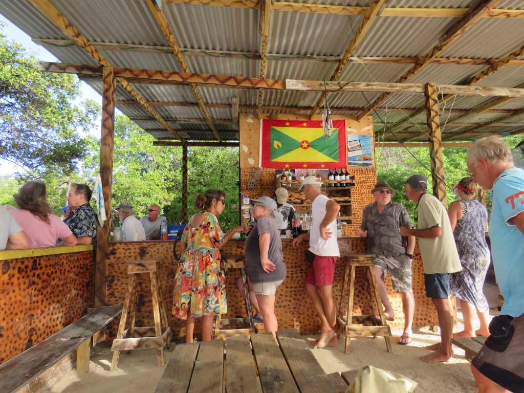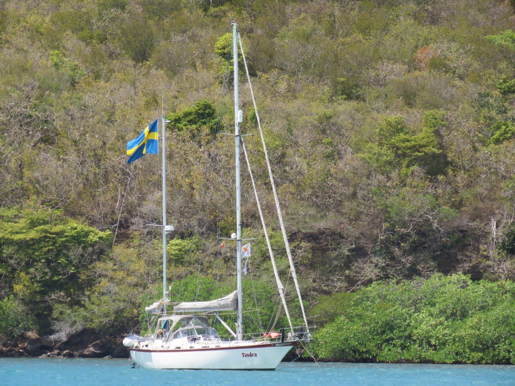 Vi hade skeppsmöte om vad Carina och Peter ville göra och hur ska vi lägga upp de sista 2 veckor som är kvar tills dom måste flyga hem från Martinique, Fort de France. Det var mycket restriktiva här i de olika öar/länder gällande covid för att komma in i ett nytt land måste man visa ett negativ covid test, ett PCR från de avlämnade land/ö och det gällde under 48 timmar. Det var en business dom kunde ta vilka priser som helst. Vi beslöt att vi skulle ta en del av Grenada i några dagar. Vi hade varit här för 5 år sedan och vi ville komma till några nya platser. Från början trodde vi inte hade det skulle bli så här med covid när den började öka i november – december och alla restriktioner och PCR tester. Det kostade och när man kommer in ett nytt land så ska man även betala för seglings tillstånd. Vi ville inte betala vad som helst utan det fick bli Grenada och Martinique . De andra öar som vi ville också besöka får vi ta ett annan gång. Vi hoppas att allt snart blir normalt. Torsdag 17 februari gick vi söder ut på Grenada där det finns några skyddade vikar. Vi gick till viken innanför Hog Island, vilken fin vik, vi kastade ankare och här låg vi till på söndag 20 februari. Vi hade tänkt att vara här i 2 dagar men vi lyckades inte få bokad tid för PCR test förrän på måndag men det gjorde inget. Det var skönt att bara få vara snorkla, bada, åka runt med Inger våran dinge i de andra vikarna, grilla, dricka Rum Punch. Till Hog Island kan man komma med bil eller snarare jeep och man får köra över en bro som såg skraltig ut. På fredag hörde vi musik från ön Hog Island och vi fick höra att det var även i morgon, lördag. Vi åkte in på lördag och tog oss Rum Puch den här drinken är rom blandat med frukt juicer och baren hade färdig blandat i en dunke, okey sa vi och tittade på varandra de här är spännande. Människorna runt omkring vad en salig blandning, några var långseglare, några var länge seglare som hade blivit original som har säkerligen fått alkohol problem, båtarna såg ut därefter och andra ”vanliga” som hade hyrt båt. Undrar hur vi kommer bli??? Näää det tror jag inte. Baren hade elverk och där kunde man få enkel mat och dryck i olika sorter. Vi pratade med några stycken och det var en man som gjorde avtryck han kom från Boston och är 74 år som hade åsikter om b.la frihet och en kvinna som visste allt om de som bodde här i sina båtar det var en person som fixade och ordnade mycket förstod vi. Vi var välkomna att komma tillbaka. Här i dessa vikar kan man ligga och förtöja i mangrove skogen under orkan säsongen. Det är mycket sällan att orkanerna träffa här i sin bana över Atlanten innan de svänger norrut. Det var jätte kul att få se det här. Alla människor var så trevliga och pratsamma. Vi fick underbara och fina dagar.