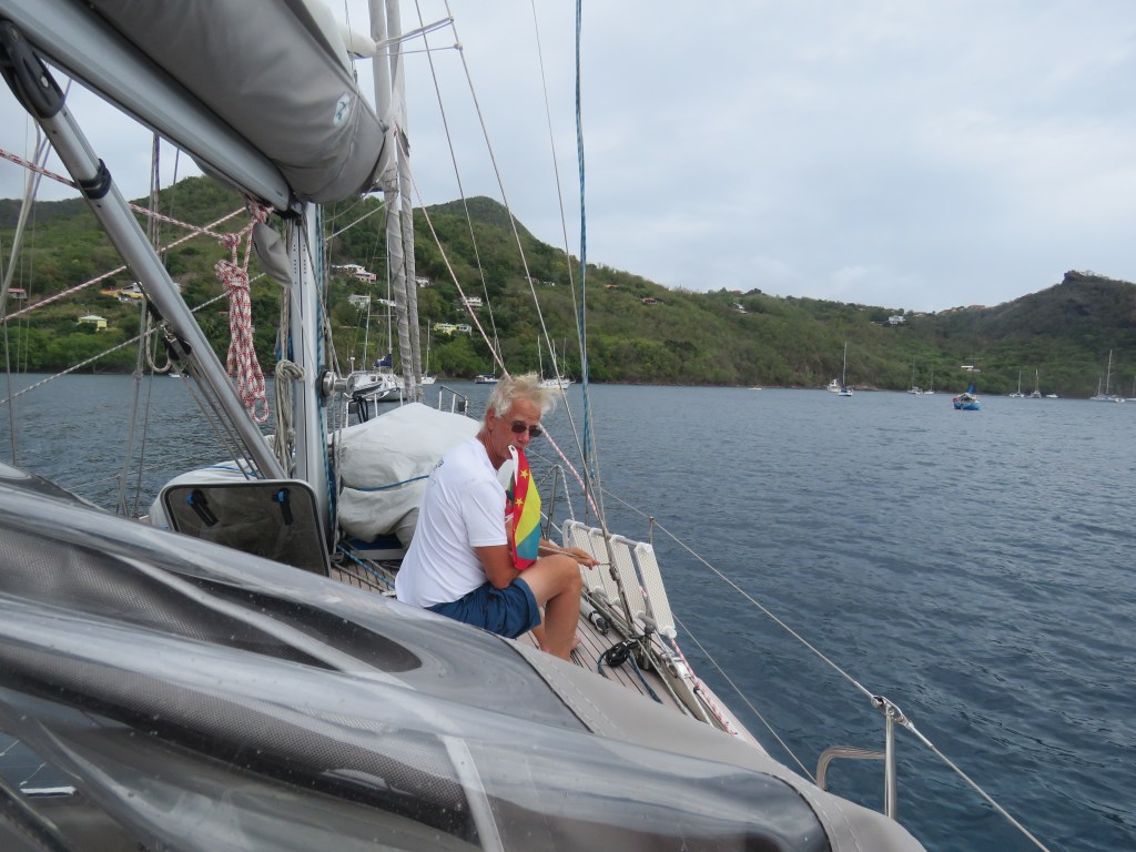 Vi fortsatte våran seglats till Martinique, 188 nm och det tog oss 2 dygn. Det var inte kul segling det var jätte jobbigt med mycket regn och strömmen mellan öarna satte oss mer och mer västerut. Det var också mycket vind, accelerations vind mellan öarna. Vi kom tillslut till Martinique och viken Les Anses D Àrlet här hade vi läst att vi kunde klarera in, det var ett nytt land för då måste man klarera in och visa det nya resultatet av PCR testet. Det var en charmig vik. När vi åkte in för att klarera in så stod det att det var stängt. Vi fick tänka om och undersökte var vi kunde klarera in som inte var så långt att gå till och inte för långt till flygplatsen. Vi ville ha några härliga sista dagar och kunna njuta, bada, snorkla innan Peter och Carina skulle flyga hem. Det blev ST. Anne. Vi var kvar till söndag 27 februari. Vi badade och strosade, vilken charmig pittoresk by.