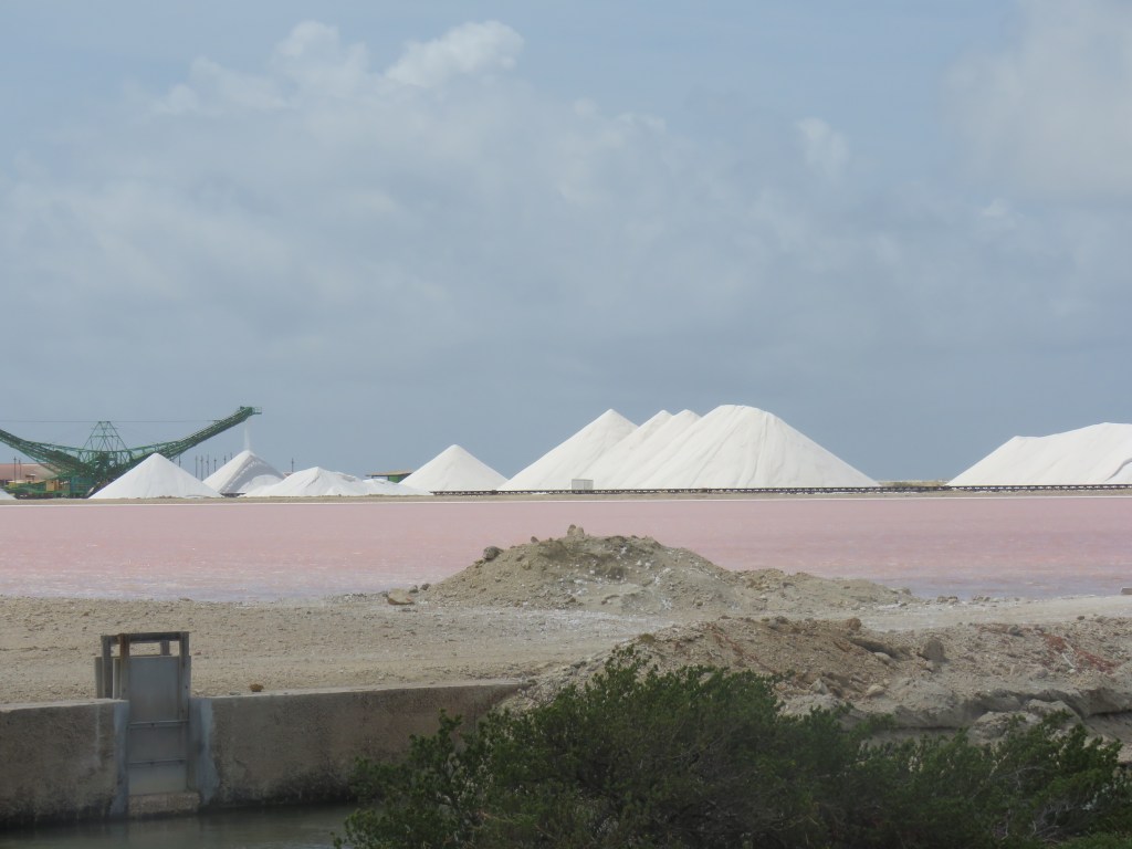 Vi lyxade till att hyra bil i 3 dagar. Det flesta uthyrnings firmorna hyr inte ut sina bilar mindre än 3 dagar och så fick det bli 3 dagar, det var inte billigt. För att kunna besöka nationalparken måste man hyra en pickup, jeep det är inte vilken bil som helst som man får köra i nationalparken för det är inte asfalterade vägar utan gropiga, sandiga och grusiga vägar. Första dagen körde vi söderut och såg de enorma salt dammarna och saltet som dom exporterar. Här färgas vattnet rosa-röd, färgen kommer från mikroorganismer. Salt kristaller bildas när avdunstning sker, det tar några månader beroende vind och temperatur. Här finner man de fridlysta flamingos dom föds gråa och efter när dom växer och äter av mikroorganismerna så blir dom också rosa. Förr i tiden använde man slavarna att sköta dessa salt dammarna och dom fick bo i små, låga, trånga hus.