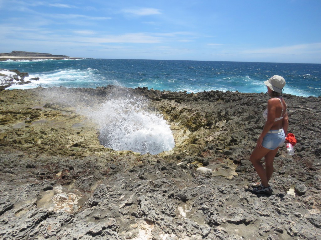 Dag 2 och 3 körde vi i nationalparken Washington Slagbaai. Dag 2 tog vi den stora rundan den har ca 2, 5 timmar körtid plus alla stopp. Första stoppet var playa Chikitu, där vandrade vi i 1,5 timmar i öken landskap med olika kaktusar, stannade och tittade på ett större blås hål, det är när vågen trycks upp genom en grotta, jätte spännande.