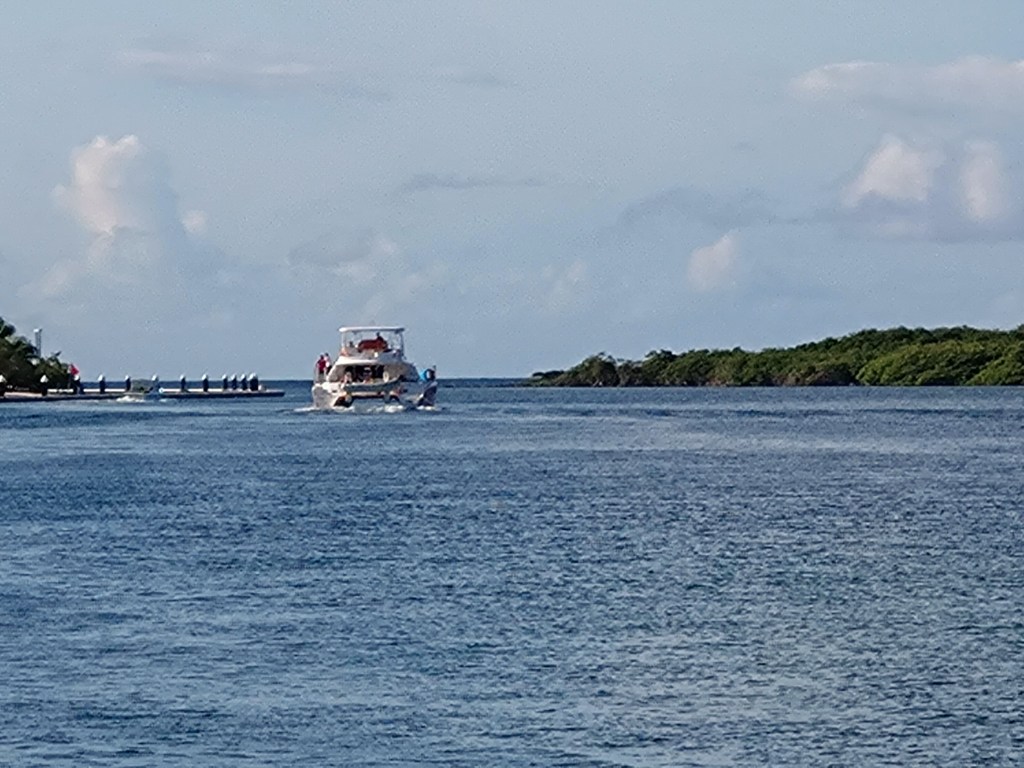 Resan till Curacao gick bra planet var lite försenad men dom flög in tiden och landade i tid. Vi flög jätte tidigt och vi startade klockan 05.00 med att äta kanske den sista kanelbullen på ett tag. Det är för varmt för att baka bullar. Det är alltid svårt att sova på planet man är en aningen trött och så har man också tidszonen. Vi fick alla våra väskor. Vi hade mycket med oss, 1 extra väska och Inger hade sin stora resväska. Det var inga problem med tullen. När vi gick ut från flygplatsen så slog hettan i mot oss, så varmt. Vi hade bra väder när vi var hemma men det var några grader kallare. Vi fick tag i taxi och vi stannade vid en mataffär så att vi kunde handla lite grann, vi hade inget hemma. När vi kom till Tindra och öppnade, det var som en ugn men allt var jätte bra med Tindra. De första dagarna på förmiddagarna packade vi upp och stuvade undan sedan fixade vi lunch. Vi packade i hop lunchen och badkläder åkte med dingen till stranden det var ljuvligt att hoppa i vattnet så klart och vi kunde även finna lite skugga på stranden. Vi förlängde hamnplatsen i 7 dagar.