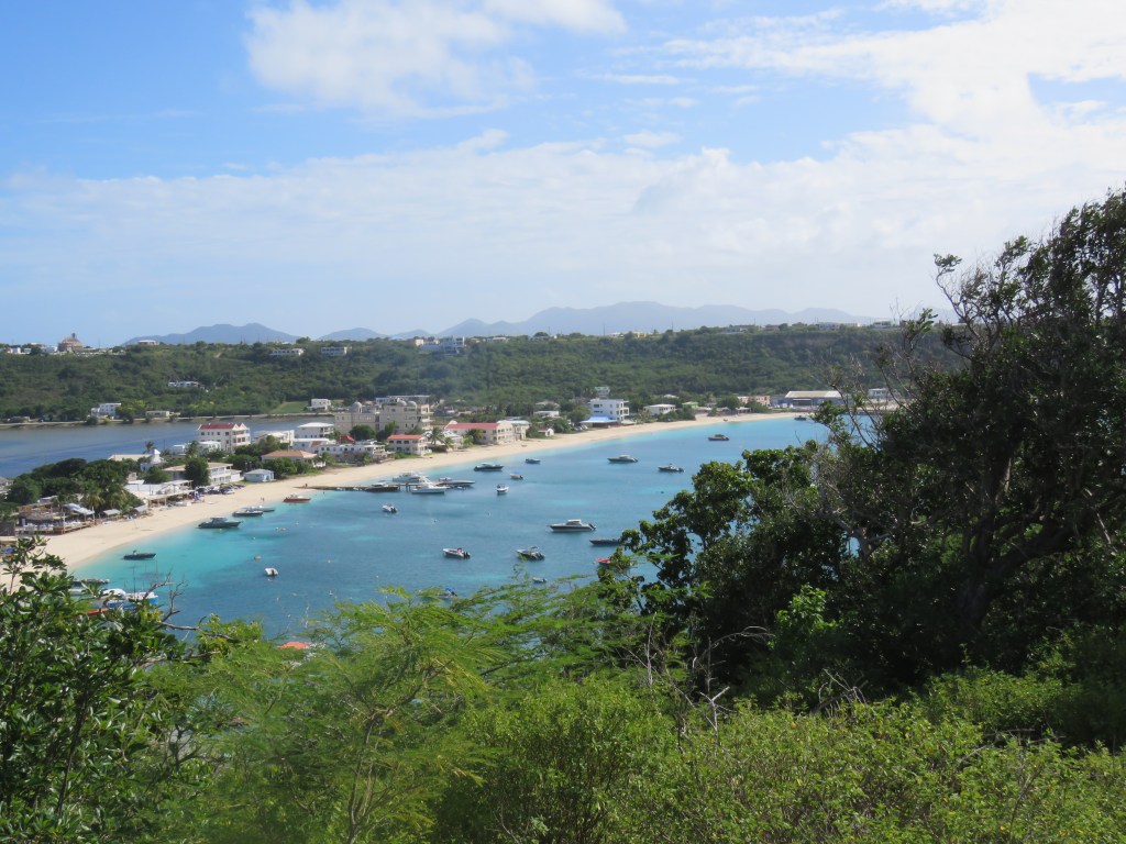Vi fortsatte våra dagar tillsammans med Eva och Dick. Vi seglade till grann ön Anguilla. Anguilla är en liten ö i norra små Antillerna i karibiska ö världen och är 2,6 mil lång och 5 km bred med små öar som inte är bebodda som tillhör naturreservatet. Vi låg för ankare i viken Sandy ground beach. Vi tog en lång promenad upp till utsiktspunkten där vi kunde se hela viken.