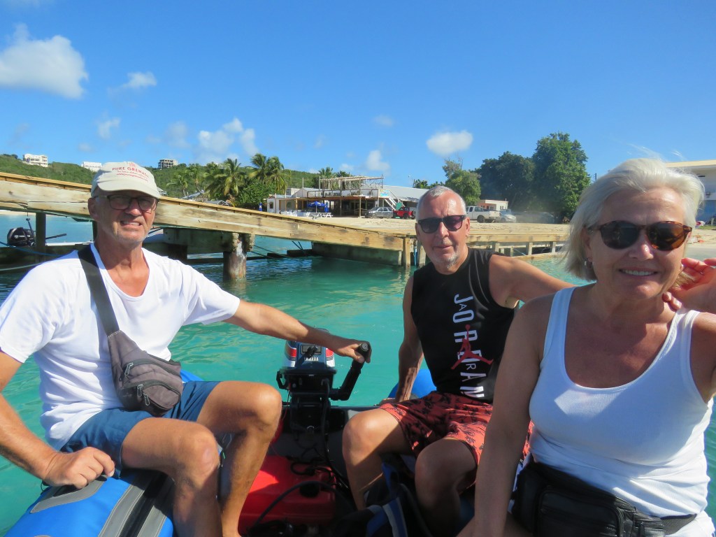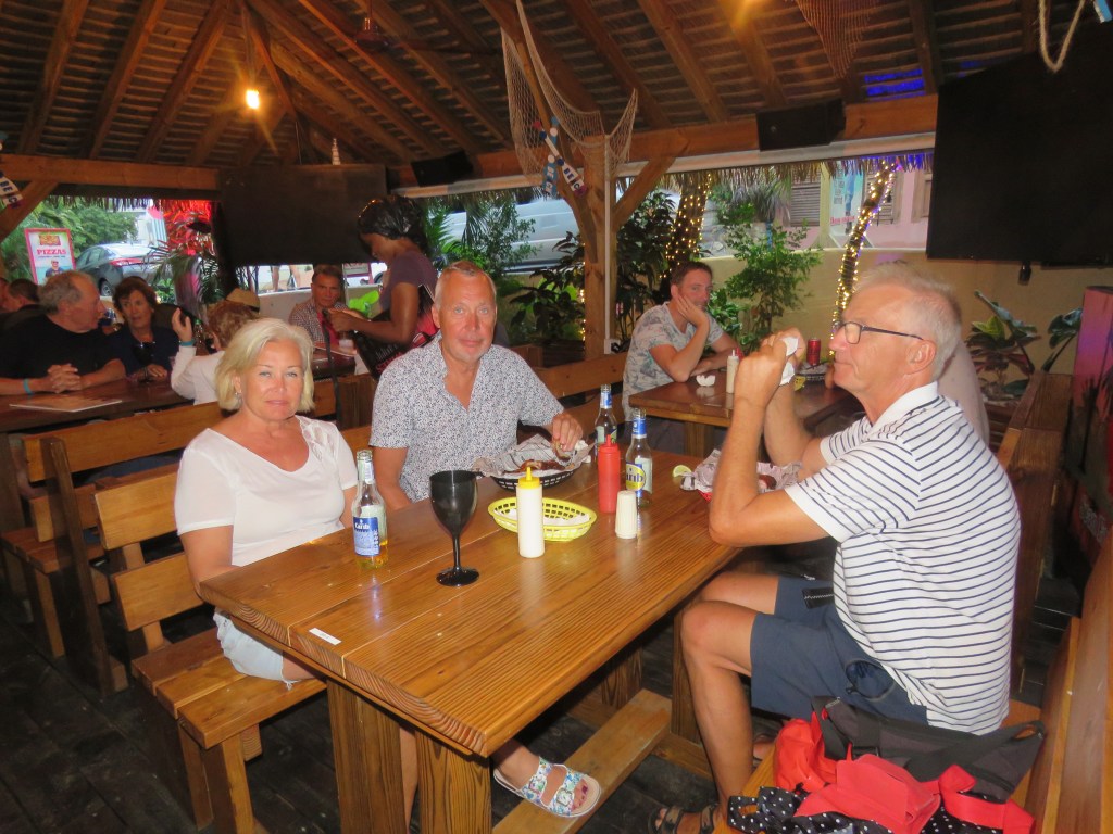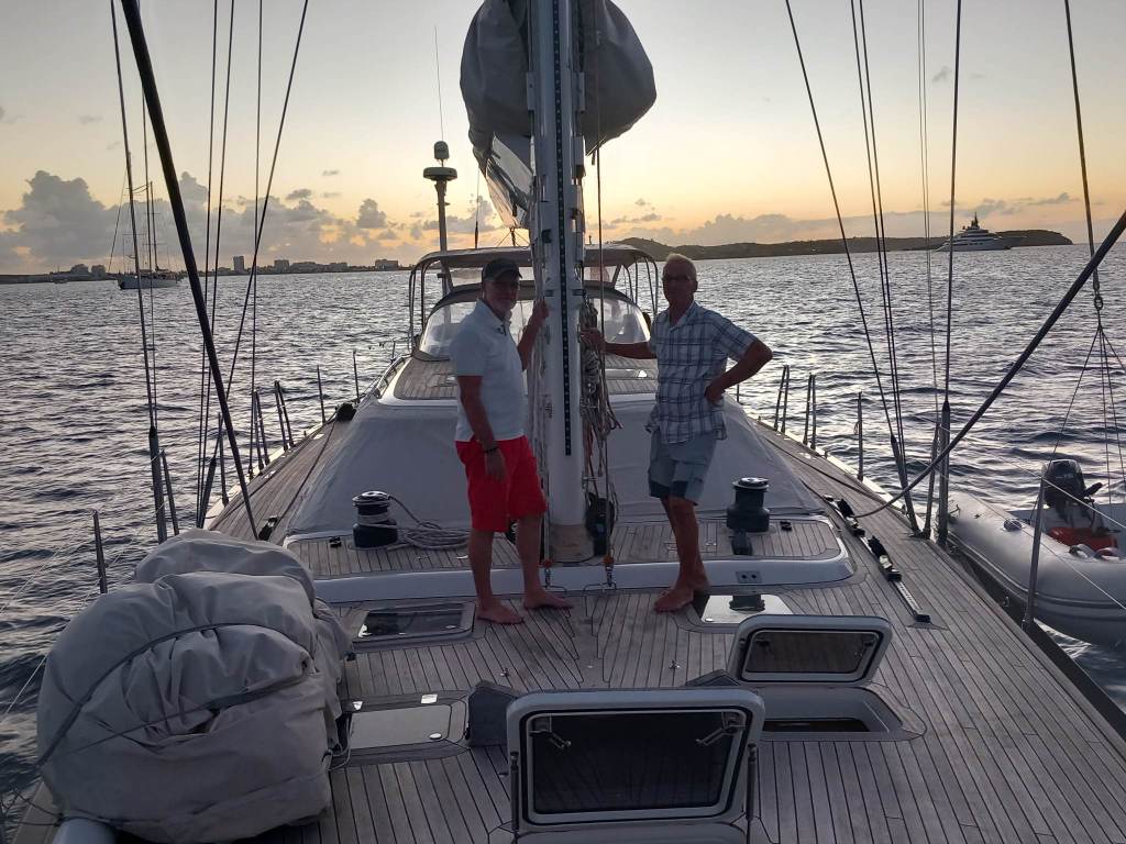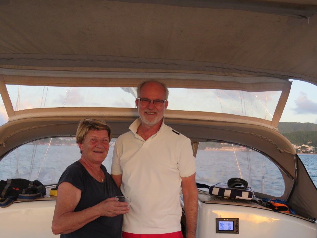 När vi seglade från Anguilla fick Lars inte ut Genuan det visade att det var brott på 7 kardeler på den 19 trådiga förstags vajern. Vi fick beställa ett nytt. Det var inte billigt det som var positivt var att Lars var där på fredag och fick ett nytt dagen efter på lördag. Lars och Dick slet i 2 dagar sedan var den nya på plats. Tack Dick för hjälpen!! Dick och Eva hade bokat hotell de sista 2 nätter men den sista kvällen var vi ute och åt. Nu var det dax och säga hejdå. Vilka härliga, mysiga, roliga dagar vi fick tillsammans. Dick och Eva är inte några båt folk men dom klarade det med bravur.