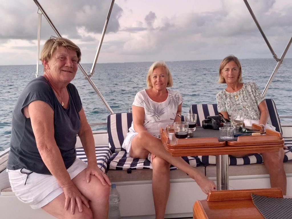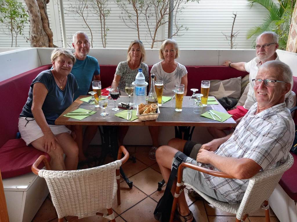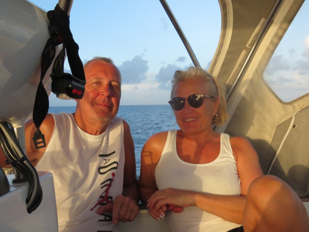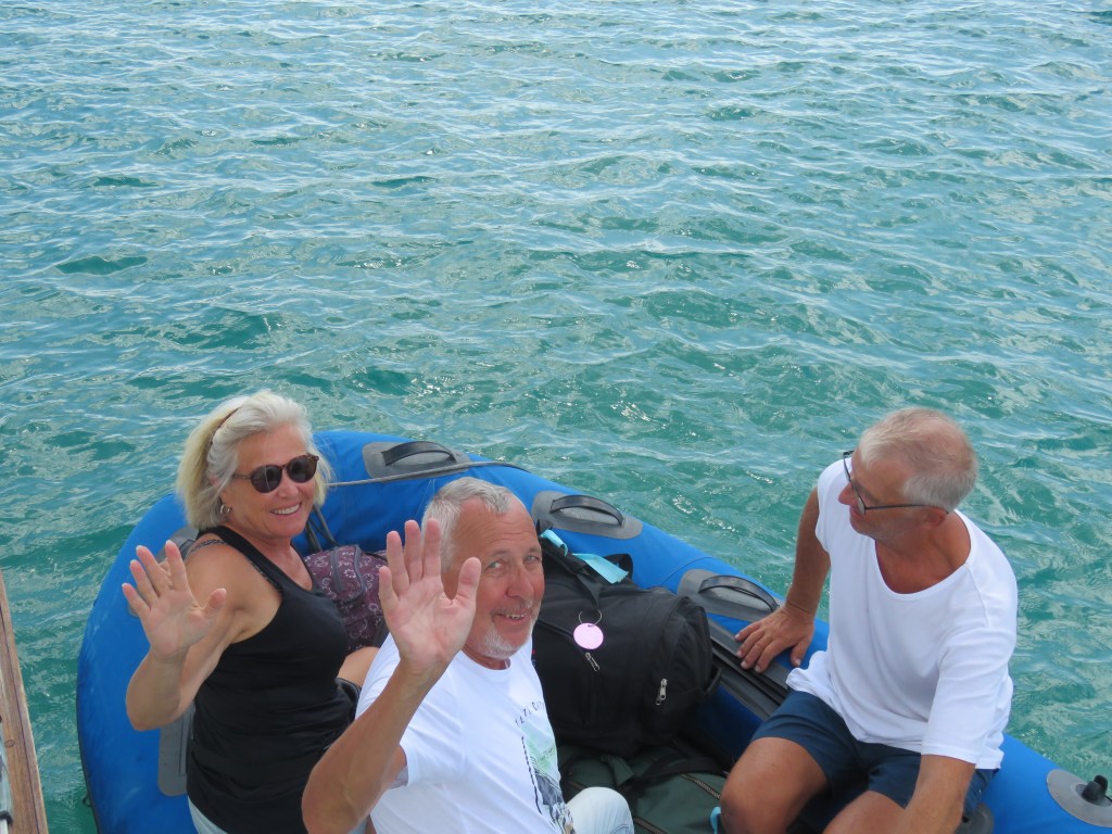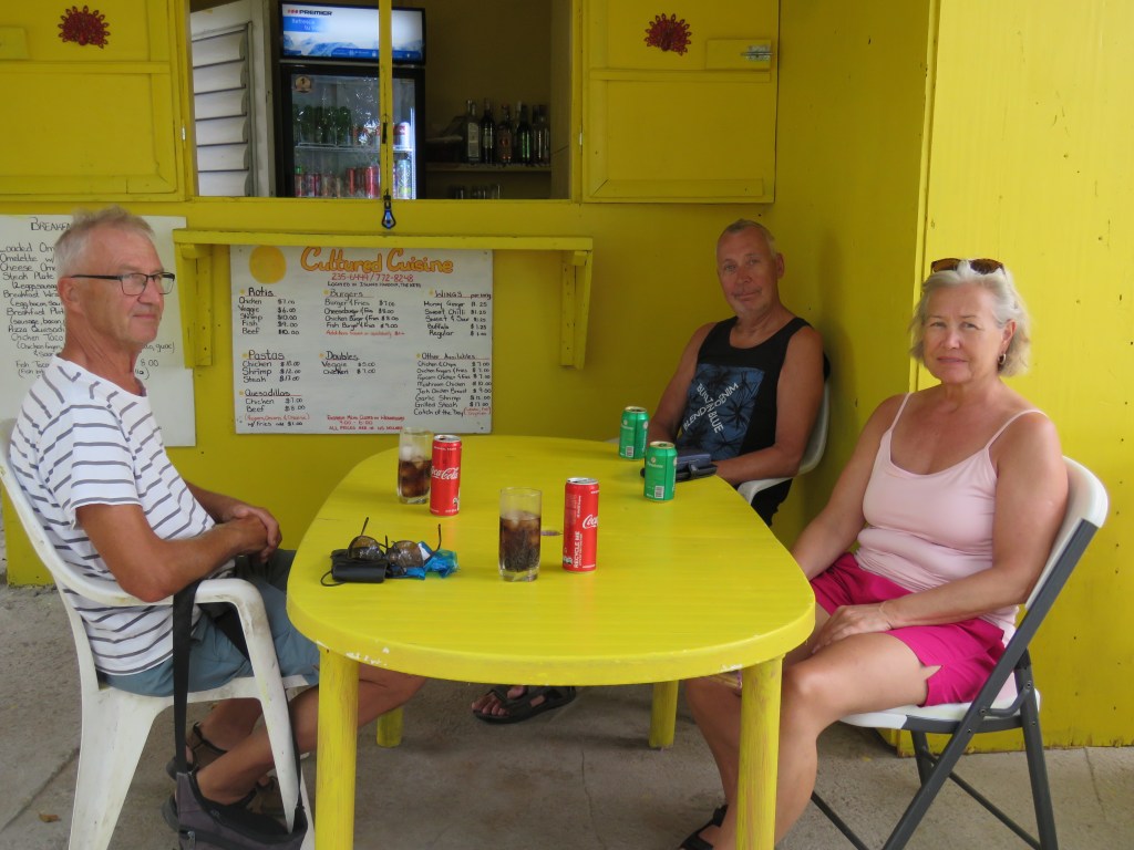 När vi seglade från Anguilla fick Lars inte ut Genuan det visade att det var brott på 7 kardeler på den 19 trådiga förstags vajern. Vi fick beställa ett nytt. Det var inte billigt det som var positivt var att Lars var där på fredag och fick ett nytt dagen efter på lördag. Lars och Dick slet i 2 dagar sedan var den nya på plats. Tack Dick för hjälpen!! Dick och Eva hade bokat hotell de sista 2 nätter men den sista kvällen var vi ute och åt. Nu var det dax och säga hejdå. Vilka härliga, mysiga, roliga dagar vi fick tillsammans. Dick och Eva är inte några båt folk men dom klarade det med bravur.