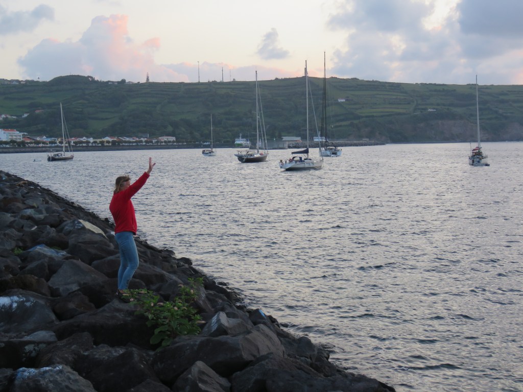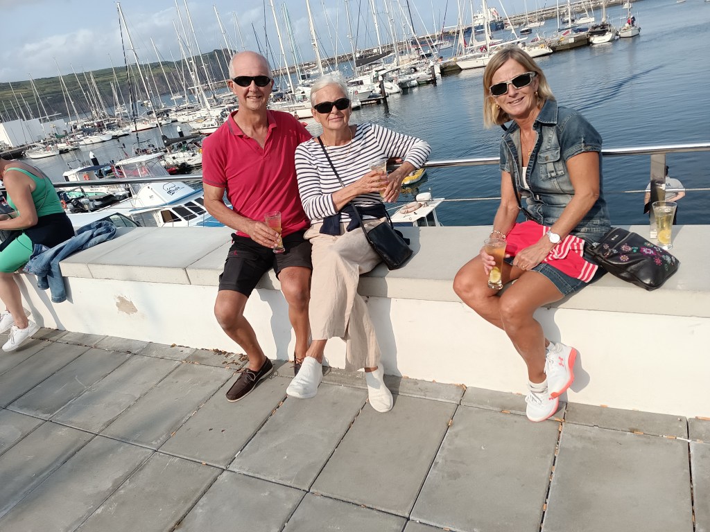 Vi var på ön Faial, staden/hamnen Horta i drygt 3 veckor. Azorerna har 9 öar och upptäcktes mitten på 1300-talet av Katalaner och den sista ön upptäcktes 1427. Ögruppen är under Portugals styre. Öarna är ursprungligen vulkanöar. Det var först på 1980-talet som turisterna började upptäcka Azorerna. Den första veckan, städade, tvättade, fixade vi på förmiddagarna och eftermiddagarna gick vi upptäcktsfärd i Horta det blev 2-3 timmar varje dag. Tisdagskväll, var vi bjudna på spelkväll hos Yolo med Ulrika och Sebastian det var revansch mellan tjejerna och gubbarna. Gubbarna vann så klart!! Det blev en trevlig kväll med mat och dryck. Onsdagskväll, träffades vi, gänget för sundowner på baren i hamnen. Vi passade på att säga hejdå till Yolo för morgon därpå, torsdag seglade dom i väg hemåt mot Sverige, ostkusten. Det var vemodigt och tråkigt. Vi har så många fina minnen. Fredagskväll, gick resten av gänget först till baren i hamnen för en drink och därefter gick vi till en liten mysig restaurang som dom andra hade varit tidigare. Det blev en trevlig kväll med god mat och dryck.