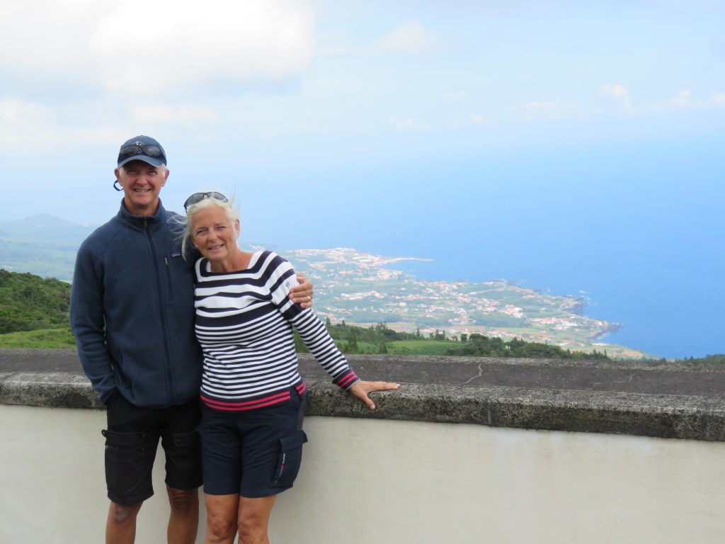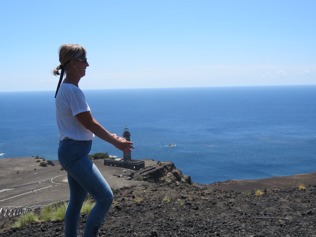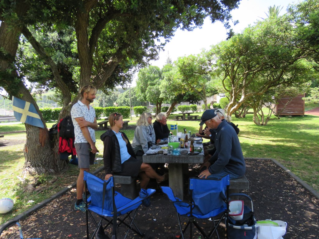 Vecka nr 2; fortsatte vi att fixa med Tindra och vi packade upp våra varma kläder mer tröjor, långärmade toppar och jackorna. Nu hade det blivit kyligare i alla fall på kvällarna även på dagarna om man jämför hur varmt vi har haft det i Karibien. Lars hade fortfarande ont i ryggen som började på lördag i första veckan. Promenaderna på eftermiddagarna blev korta. Måndagskväll var det sundowner på baren i hamnen, planerade nationaldagen hur vi skulle fira den som var dagen efter. Vädret skulle vara så där. Vi skulle avvakta och se hur mycket vind och regn det skulle komma. Nationaldagen på eftermiddagen bestämde vi att vi skulle gå till parken och fira. Det blev grillad för några och vi skålade i champagne. Vi spelade kubb och något annat spel nu kom även familjen på Tiger Lily som sammanstrålande med oss. Chris på Ari var också med och firade svenska nationaldagen. Vi sjöng nationalsången, vi eller om det var Anna som kunde nästan hela sången. Det blev en mycket lyckad firande av nationaldagen. 8 juni sa vi hejdå till Trivento med Marie och Crister. De skulle mot Kanarieöarna med några stopp. Det var också jätte vemodigt. Fredag 9 juni hyrde vi en scooter och upptäckte västra delen av Faial. Vi åkte på små vägar kantade av hortensia i alla dess färger så vackert och genom pittoreska byar. Vi besökte Fyren av Ponta dos Capelinhos som nu är skyddad landskap och historisk med utställning och vandringsleder runt omkring. Efter sista utbrottet 1957 som förstörde fyren och skapade en ny del av ön. Vi vandrade upp till toppen. Det var mycket intressant.