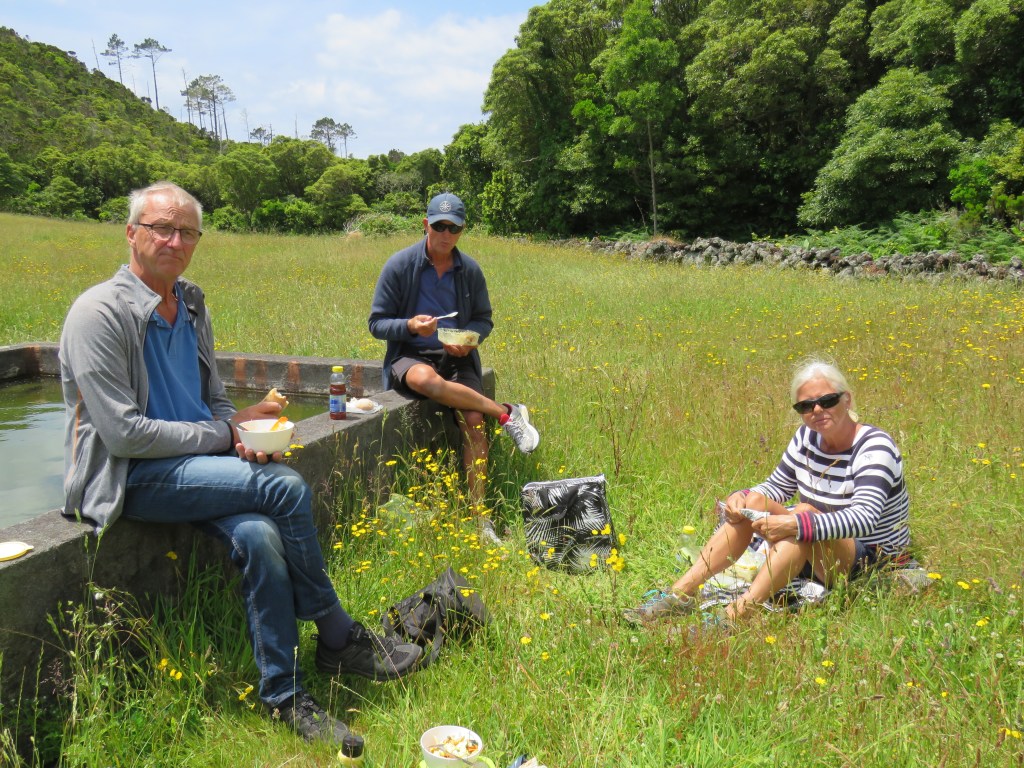 Efter när vi hade vinkat av Elixir och Ari tog vi färjan kl. 07:45 på lördag den 10 juni till Pico, hamnen/staden Madalena med Claes och Anna för en utflykt. Vi hade hyrt bil på Pico. Pico är näst största av öarna och har den högsta berget (vulkanen) Ponta do Pico i Azorerna och Portugal. I Picos varma och torra klimat tillsammans med den mineral rika jorden odlas det druvor för tillverkning av vin. Det byggs som terrasser och med stenar runt, man kan se det som lådor som skyddar plantorna mot vinden. Vi stannade i Cachorro och såg hur lavan hade runnit ner i havet och bildat olika formationer. Vi stannade också och tog en promenad i Lajido de Santa Luzia, besökte muséet om vulkanen. Vi åkte uppför berget Pico och ner på andra sidan till staden Lajes. Vi stannade och beundrade den vackra vyn och vi stannade också för lunch. Vi hittade en jätte fin äng, hage som vi åt våran medtagna lunch. Som Anna sa att det var som Bregott fabriken. Otroligt vackert, grönt och korna betade på kullarna. Vi avslutade dagen med val muséet, Pico är känd för mångårig traditioner av valfångst. Det var mycket intressant ö. Vi fick en fantastisk, härlig fin dag tillsammans med sol och inget regn. Vi var trötta och belåtna när vi tog färjan tillbaka till Horta.