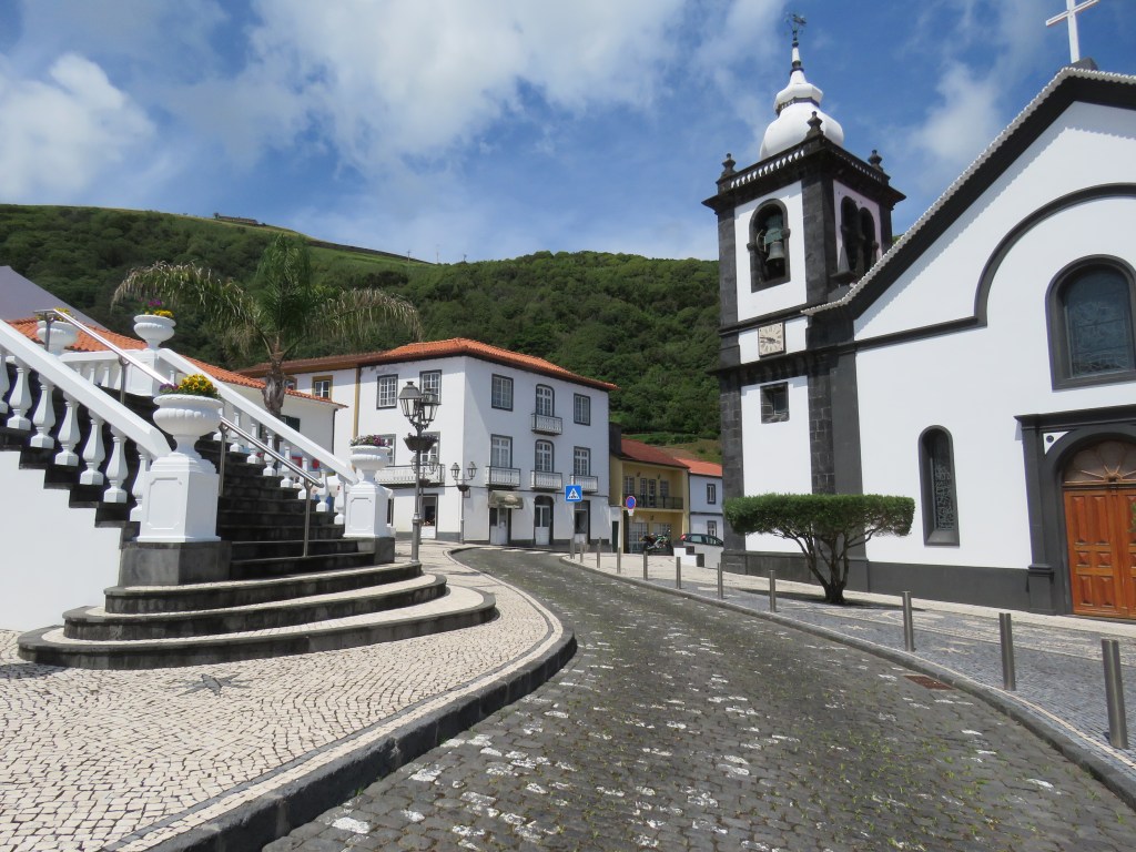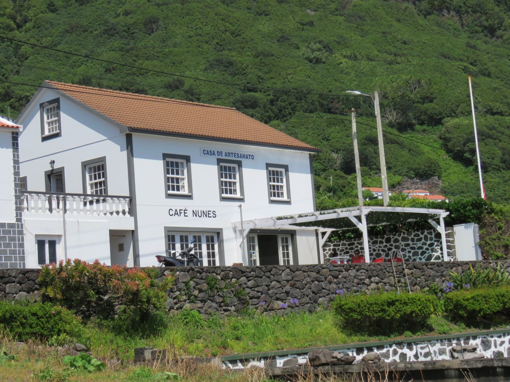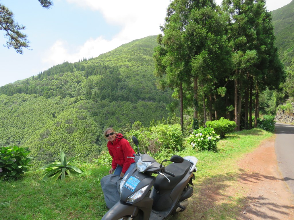 Vi hyrde scooter i 2 dagar. Första dagen körde vi österut till den andra staden Calheta. Vi stannade och besökte kyrkan Santa Barbara som var otroligt vacker byggd i barock stil. Vi stannade i Calheta och åt lunch nära stranden. Vi blev serverad av en mycket trevlig tjej som var ungefär i 20-års ålder hon var så glad att få prata engelska och hon berättade om sina drömmar. Det var så här vi mötte invånarna på Sao Jorge dom berättade om sig själva, om ön och är jätte hjälpsamma. Vi fortsatte till kaffeplantagen som ligger vid öns södra kust. Kaffeplantagen är den nordligaste kaffeplantage och är den minsta. Kaffebuskarna är planterade mellan apelsinträden för att få lite lä från de salta havsvindarna. Det är ett litet familjeföretag och dom har också en cafeteria som man kan pröva deras kaffe. Vi tog vanligt kaffe och den typiska kakan.