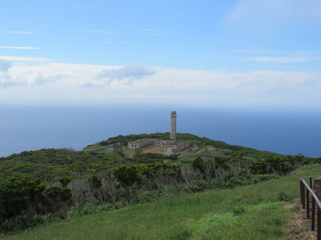 Andra dagen ville vi vandra, här på Sao Jorge finns det jätte många vandringleder. Vi valde en mindre vandring för vi ville även hinna med ostfabriken och fyren som låg längst ut i väster. När vi kom upp på berget så var det först soligt sedan blev det mer och mer dimma med fint regn och det började även blåsa. Vi trotsade vädret i ca 1 1/2 timme sedan gav vi upp det blev inte bättre. Vi fick vända det var lite tråkigt för det skulle vara en otrolig utsikt men men man kan inte alltid ha tur med vädret. Vi fortsatte till ostfabriken. Vi såg att vi började få ont om tid om vi skulle hinna med fyren så vi hoppade över rundturen i fabriken, vi provsmakade de olika ostarna och köpte med oss hem. Ostarna på Azorerna är jätte goda och är ett fördärv det är såååå gott. Sista stoppet för dagen var fyren Farol dos Rosais som ligger längst ut i väster. Där man också om man har tur att kunna se valar. Här kan man se öarna Pico, Faial och Graciosa. Fyren används inte i dag pga. jordbävningar och jordskred.