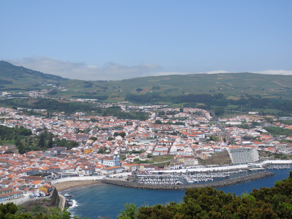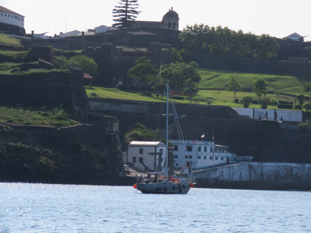 Vi gick upp jätte tidigt för att segla till ön Terceira, hamnen/staden Angra do Heroismo. Vi seglade 57,8 nm och vi kom fram kl. 18:30. Vi såg att det var tält, mycket människor som strosade och vi hörde musik. Nää sa vi är det festival, vi har inte emot festivaler det kan vara jätte kul men dom spelar så högt och sent på kvällarna, ligger man nära så vet man att sömnen blir störd. Vi la oss för ankare utanför hamnen. Vi fixade lite kvällsmat och sedan dröjde det inte länge förrän vi tittade på varandra och sa i korus det blir tidigt i kväll och det blev med öronproppar på. Vi var jätte trötta. Dagen efter sjösatte vi dingen och åkte in i hamnen för att checka in. Det är så lätt att checka in och ut på Azorerna, efter man har checkat in första gången så finns allt kvar i datorn man behöver bara säga sitt båtnamn. Vi pratade med hamnkapten det var fullt i hamnen men vi kunde sätta upp oss på kölista. Det gjorde vi. Här på Azorerna kan man inte boka hamnplats utan man hoppas att man har tur att få plats i hamnen och att det finns en hamnbassäng som man kan ankra så länge medan man väntar på plats. Vi gick iväg och handlade när vi kom tillbaka så chansade vi och hörde om det hade blivit någon plats ledig de hade det så vi flyttade Tindra till den angivna platsen. Terceira ligger i mitten av norra Atlanten och är en av det större öarna på Azorerna med cirka 53 000 invånare. Det finns 2 hamnar en på södra sidan Angra do Heroismo och en på östra sidan Praia da Vitoria. Det finns även en större flygplats.