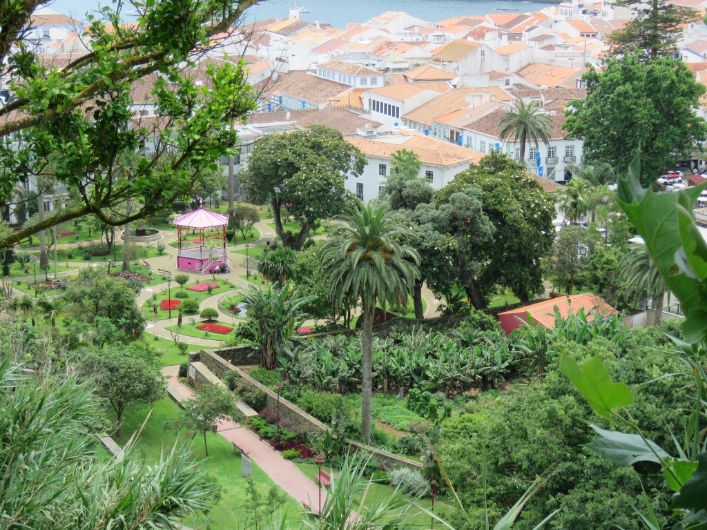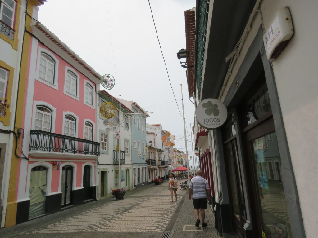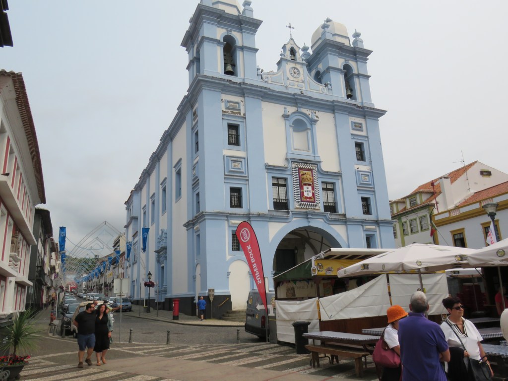 Det finns mycket intressant historia från när ön upptäcktes och de första nybyggarna. Vi började att utforska staden och besökte turistinformationen. En stor del av den äldre delen av Angra Do Heroismo är klassad på Unescos världsarvlista. Vi delade upp staden i 3 dagar för att kunna se mycket av vad den erbjuder. Dag 1 gick vi mitten och besökte bland annat den vackra kyrkan Santissimo Salvador da Sè Church som byggdes på en tidigare församlingskyrka 1570 i renässansstil. Det finns fler kyrkor som vi såg på utsidan och insidan. Det finns många välbevarade byggnader ex. Palatset Major Generais och längs den första huvudgatan Direita som vi såg och många mer. Vi avslutades med lunch och tittade på myllret av folk det syntes och hördes att det var festival. Vi gick hem och vilade sedan svidade vi om och gick ut på kvällen. Vi gick till Town hall, stadshuset, där hade dom byggt upp en scen framför huset och det var uppträdande varje kväll med olika musikgrupper. Den här kvällen var det storbandsjazz.