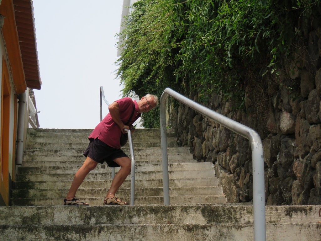Dag 3 tog vi den långa vandringen uppför Monte Brasil. På våran väg besökte vi den äldsta militäriska sjukhus, klostret St Claire den största på Azorerna. Vi såg Fortet do Sao Joào Baptista do Monte Brasil byggd emellan 1593 0ch 1636 från utsidan. I dag är det aktiv militär förläggning för att kunna besöka fortet och se innanför murarna måste man boka en guide, vi hoppade över det. Det var fantastisk vacker vandringsled det var ordnad med grillplatser, bänkar och bord. Det fanns lite djur ex. en stor Ara papegoja, påfågel mm. Dom hade byggd ett lite hus för de hemlösa katterna det var skyltade att man inte fick mata katterna.