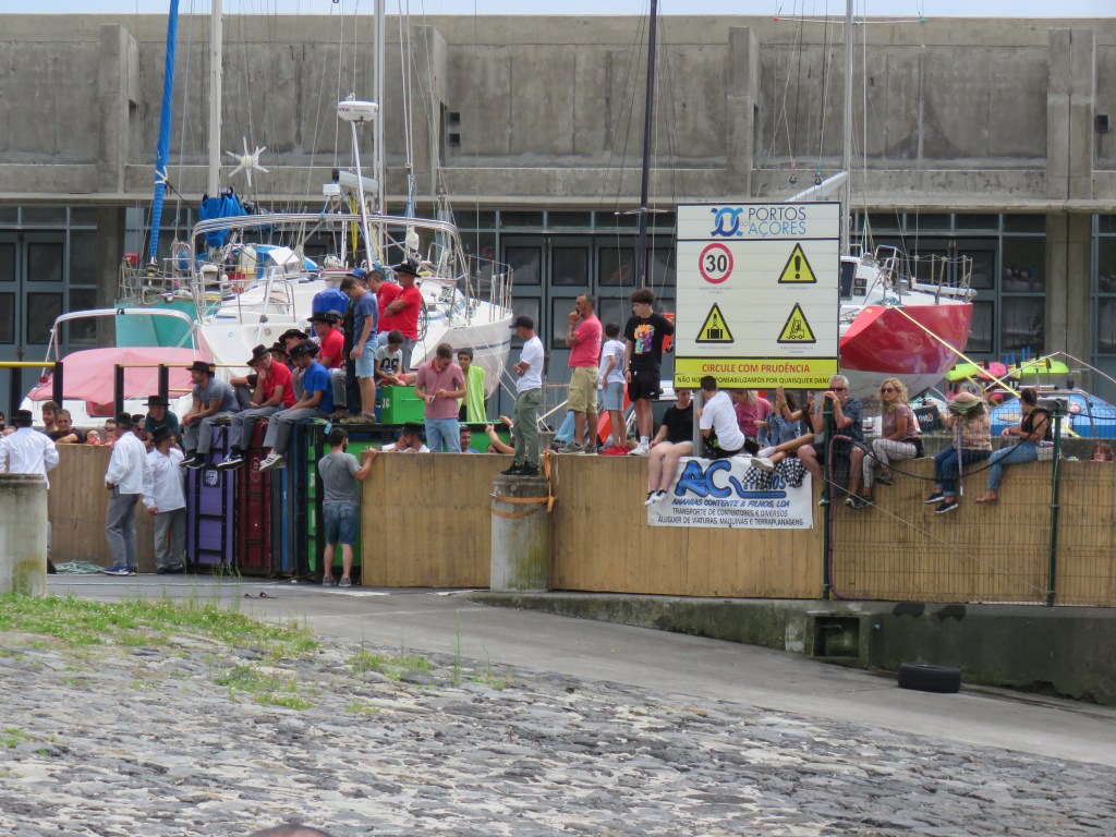 Vi avslutade veckan med att se bullrope som är tradition på gator och som här vid hamnplanen som finns på Terceira det är utmärkande för Azorerna. Där 8 modiga män (herdar) håller tjuren i ett långt rep och män som retar tjuren med tygstycke eller paraply. Det är under ordnade former. Tjuren har skydd på sina horn. Tjuren skadas inte. Dagen efter seglade vi till ön Sào Miguel.