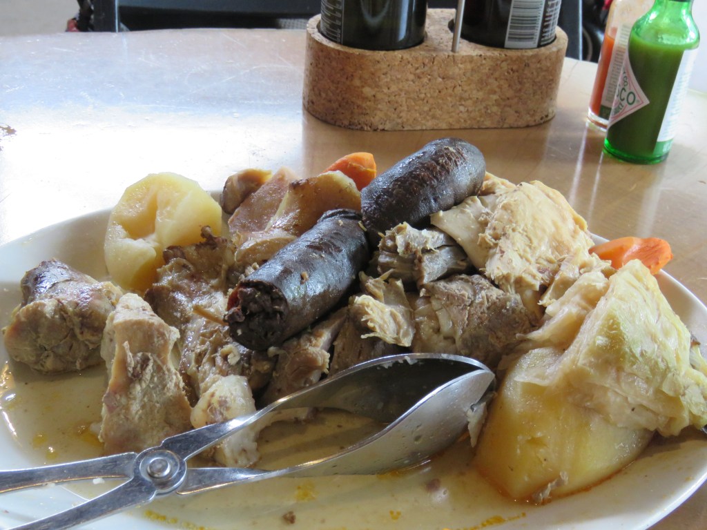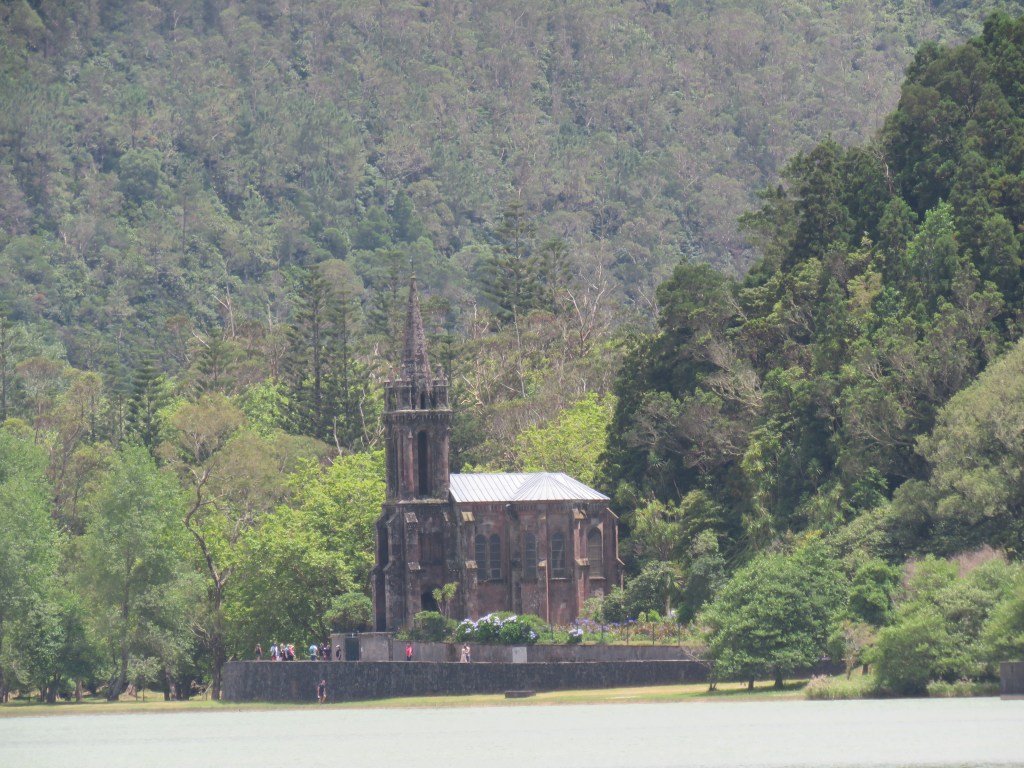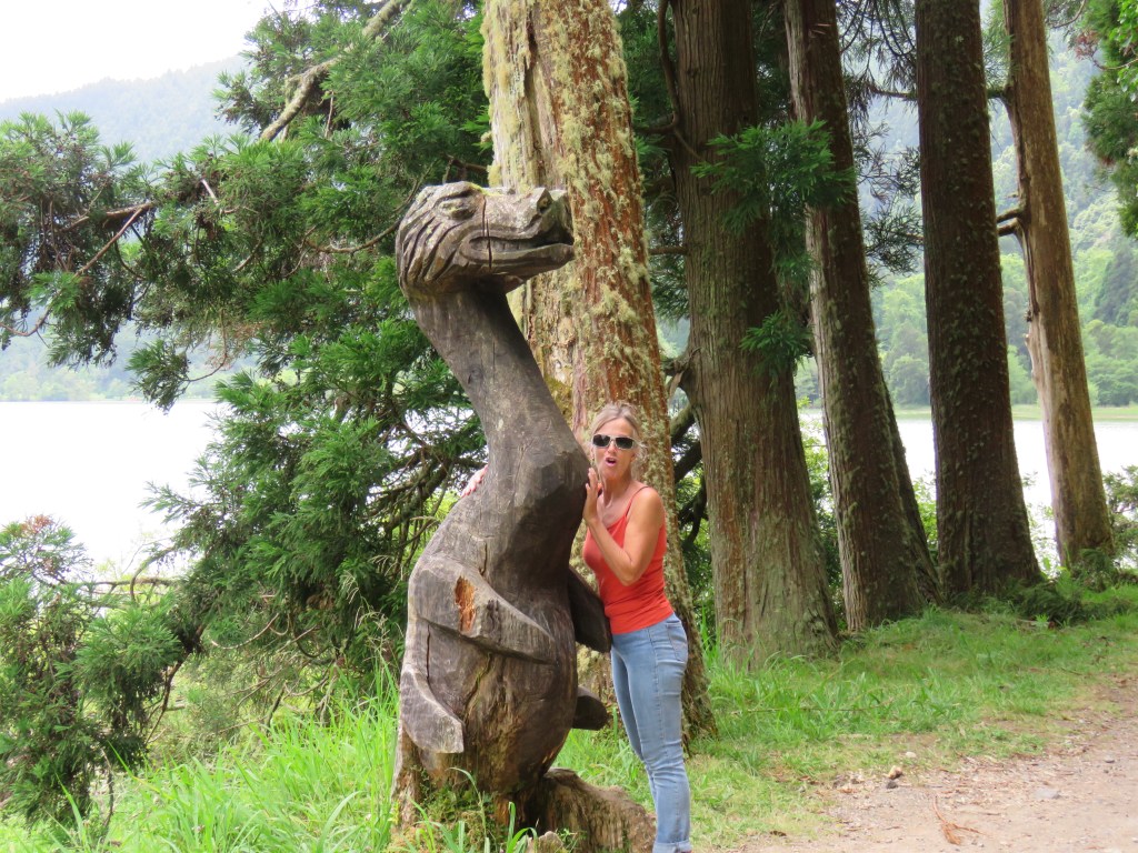 Dag 2. Fortsatte vi våran tur österut till staden Furnas. Vi körde längs kusten genom den ena mysiga byn efter den andra. När vi kom fram började vi med att fika och beställde den speciella rätten Cozido på en av restaurangerna som öppnade kl. 12.00. Grytan Cozido tillagas i de varma hålorna, vulkanens heta jord, det pyser och fräser vattenånga och det tar ca 5-6 timmar innan det är klart. Det är verkligen slow-cooking. Under tiden vandrade vi längs sjön och såg hur dom tillagade grytan. Grytan var rätt så smaklöst men väl kokt det bestod av bl.a. lever korv, kryddad korv, grytbitar av nöt och gris, kyckling, kål, morötter. Längs vägen som vi vandrade fanns det träskulpturer. Dom är jätte fina några var gamla och det hade börjat växa mossa annat grönt på. Här finns också varma källor där man kan bada. Vi hoppade över det.