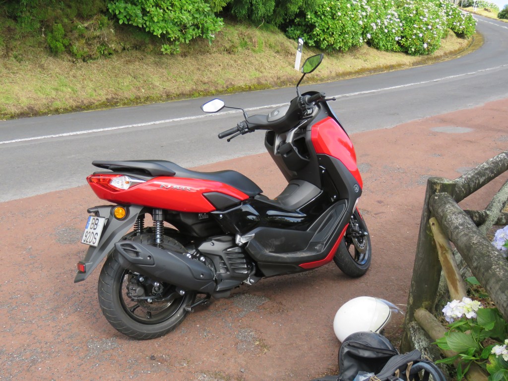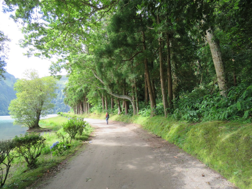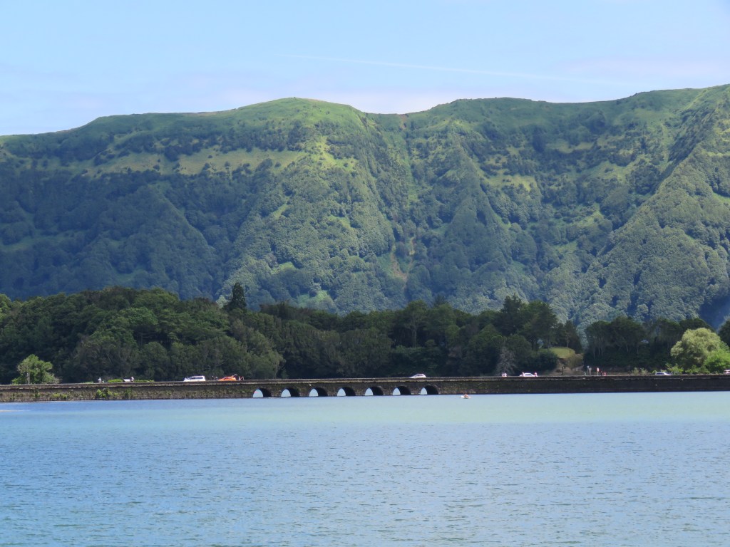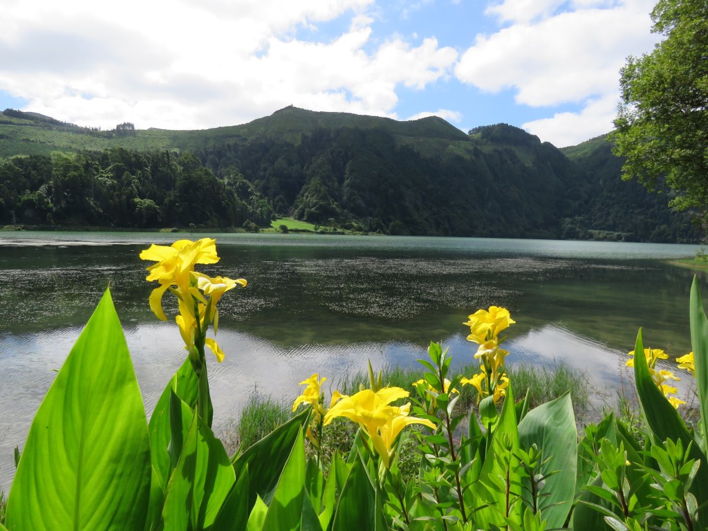Vi fortsatte att upptäcka ön med att hyra scooter i tre dagar. Vi fick en helt ny och jag fick välja färg såklart blev det röd. Dag 1 tog vi oss västerut till sjön Azul (blå) och Verde (grön). Det är två vulkankratrar som har blivit sjöar. Färgerna beror på djupet av sjöarna. Det förbinds med en bro i mitten av ett smalt sund. Det sägs att det finns en kärlekshistoria bakom de tvåfärgade sjöarna om en omöjlig kärlek vid första ögonkastet mellan en herde och en prinsessan som slutade med att prinsessan blev bort förlovad med en prins i ett annat rike. Deras tårar bildades dessa två vackra sjöar, en grön för prinsessans ögon och den andra blå, för herdens ögon var likaså färgade. Vad man än tittade så var det otroligt vackert. Vi tog oss ner för den slingrade vägen och stannade för en promenad längs sjön Verde efter ett tag satte vi oss och åt våran medtagna lunch. Därefter åkte vi till den andra sjön och gick längs sjön Azur här finns det en tunnel som man kan gå igenom för att komma ut till en sjö. Vi började att gå men det var så geggigt så vi vände tillbaka. I byn Sete Cidades besökte vi den fina, lilla kyrkan Igreja de São Nicolau och avslutade med en fika. Vi avslutade dagens tur med att besöka fyren Ferraria. När vi kom tillbaka till Ponta Delgada så var hela inner stan avstängd och poliser överallt. Det var en procession med oxar, kor, vagnar med olika mat och dryck mm. Dom firade den heliga anden. På kvällarna var det olika konserter i kyrkorna och torget. Vi fann tillslut en väg som vi kunde köra och hittade en parkering.