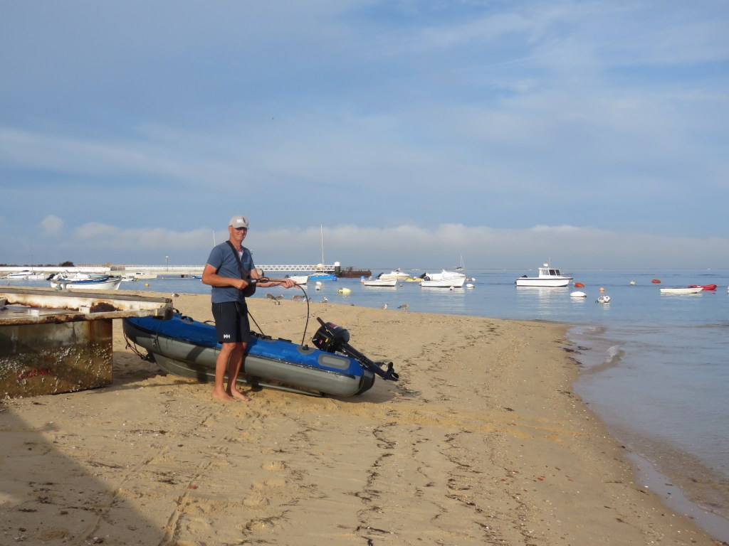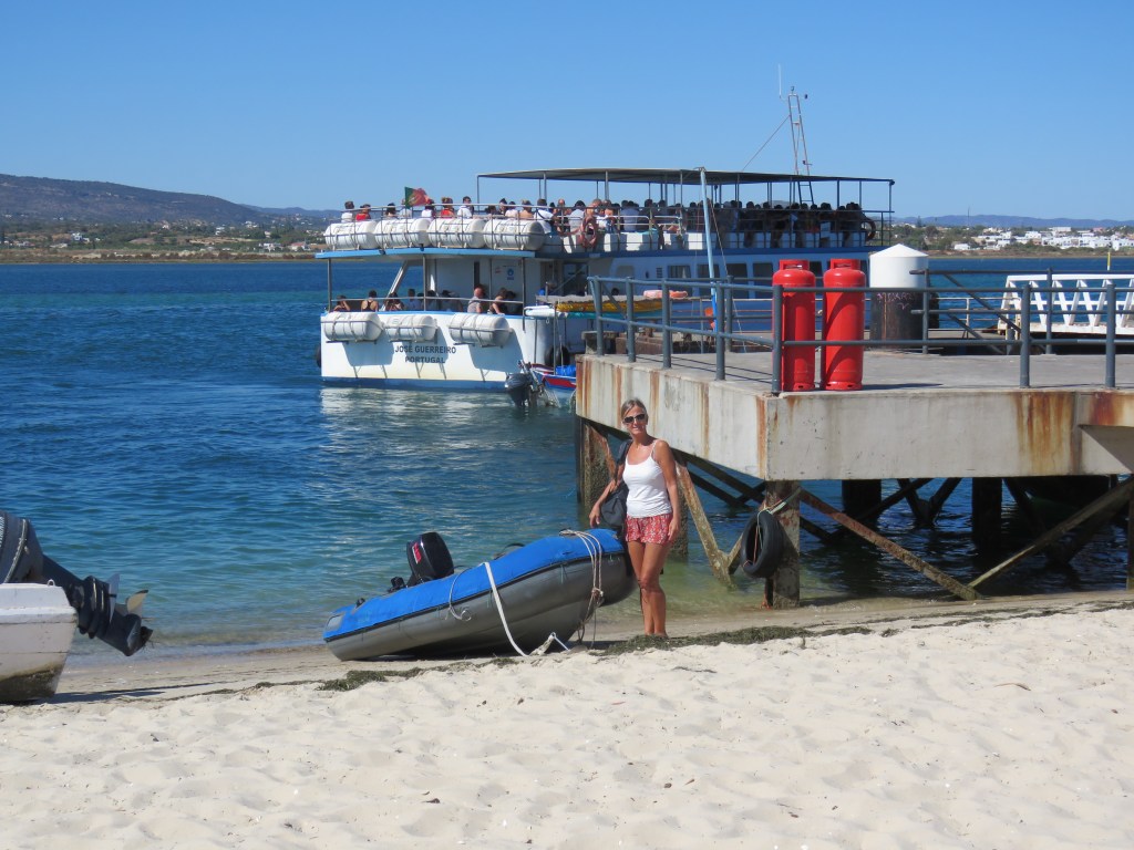 Dagen efter när vi hade ankrat åkte vi till Olhào och handlade det var marknad men vi kom lite sent dom höll på och packa i hop. Vi gick runt och tittade oss omkring men staden tilltalade inte oss så mycket. Det var mest fisk industri. Senare på kvällen kom Andante med Anna och Claes. Vi hann och träffade dom två kvällar innan dom skulle fortsätta, en gång hos oss och en gång hos dom. Det var jätte roligt att ses det var ett tag sedan. Vi hade inte bråttom utan vi var kvar några dagar till. Vi tog promenader på Culatra, korta och långa. Vi besökte också ön Armona där vi badade, tog promenad och avslutade med lunch inne i byn. Vi hade förstått hur man enklast ta sig med dingen till Olhào, vi hade studerat invånarna. Mellan ankringsplatsen och området som i bland är hav och i bland mark, tidvattens område. När högvattnet, havet börjar komma tillbaka kan man köra rakt över området för då finns det vatten under dingen. Det är lite planering men det fungerar alltid.