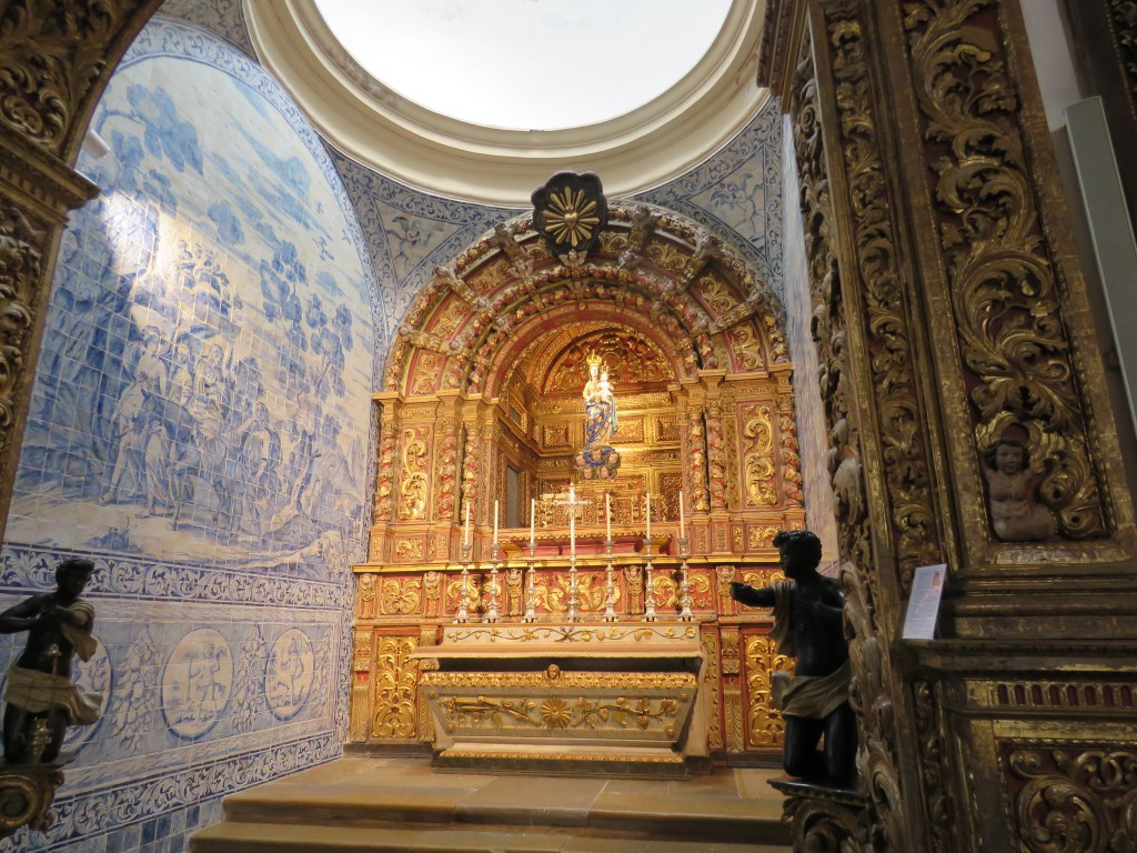 Vi avslutade här i Formosa med utflykt till Faro. Vi tog dingen tidigt på morgonen till hållplatsen vid Farol och där i från med färjan till Faro. Vilken härlig stad och är Algarve regionens största stad. Färjan stannade vid den gamla stadsmuren och innanför är den gamla staden. Vi besökte den gamla staden och började att promenera från den mäktiga valvet, Arco da vila som delar av staden den gamla och nya. Den gamla staden var mycket charmig med kullerstenar, smala gator och gamla hus. En historia som sträcker sig från romartiden. Vi besökte kyrkan Santa Maria där det finns ett litet ben kapell. Först gick vi in till en innergård där det finns en mycket liten trädgård. Därefter till Santa Maria kyrkan som började byggnaden av huvudkyrkan 1251och varit utsatt för ex. bränder och jordbävningar blev ombyggd efter jordbävningen 1722 och 1755. Kyrkan har blandade stilar gotiska, renässans – och barock influenser.