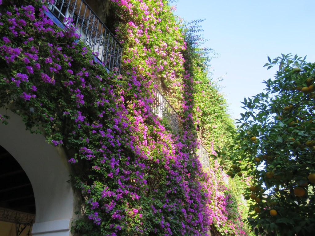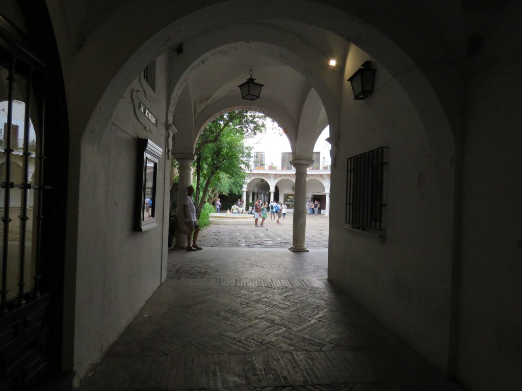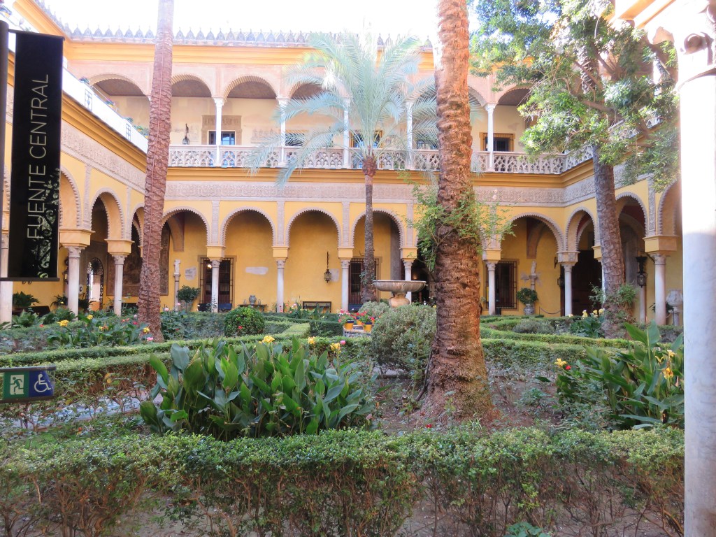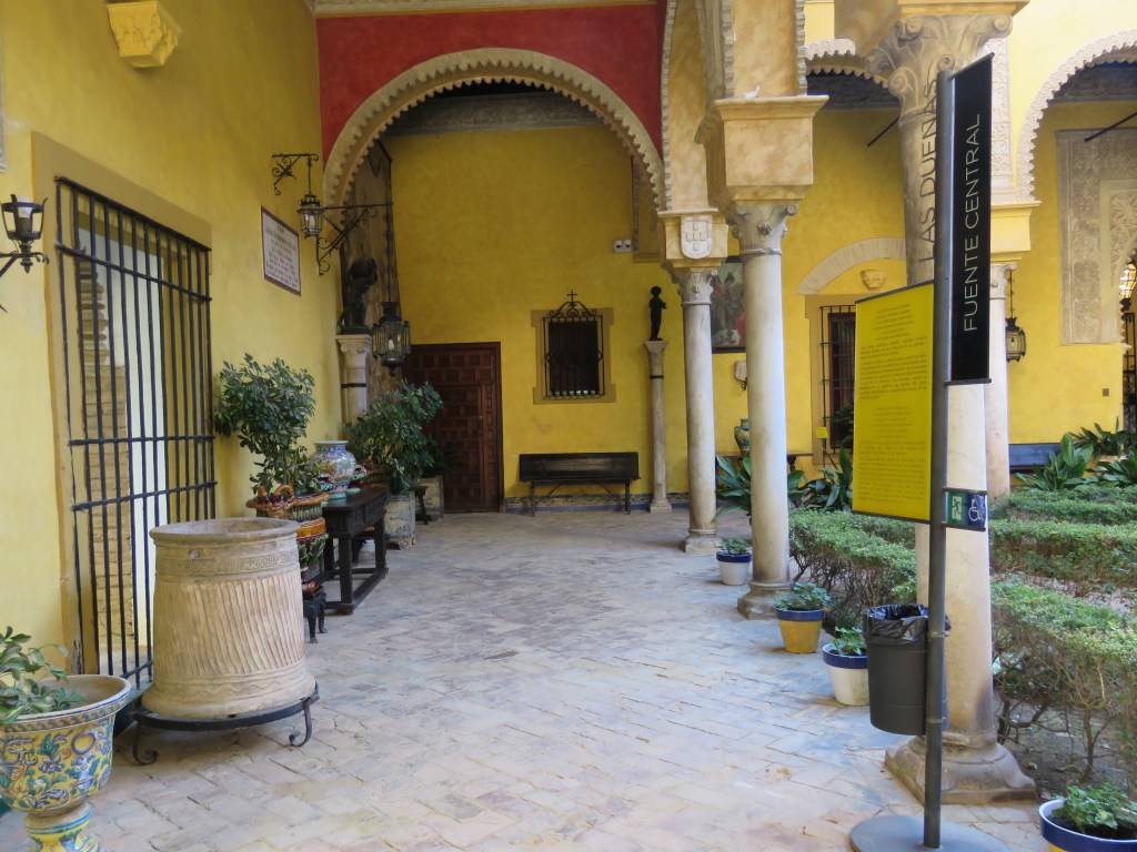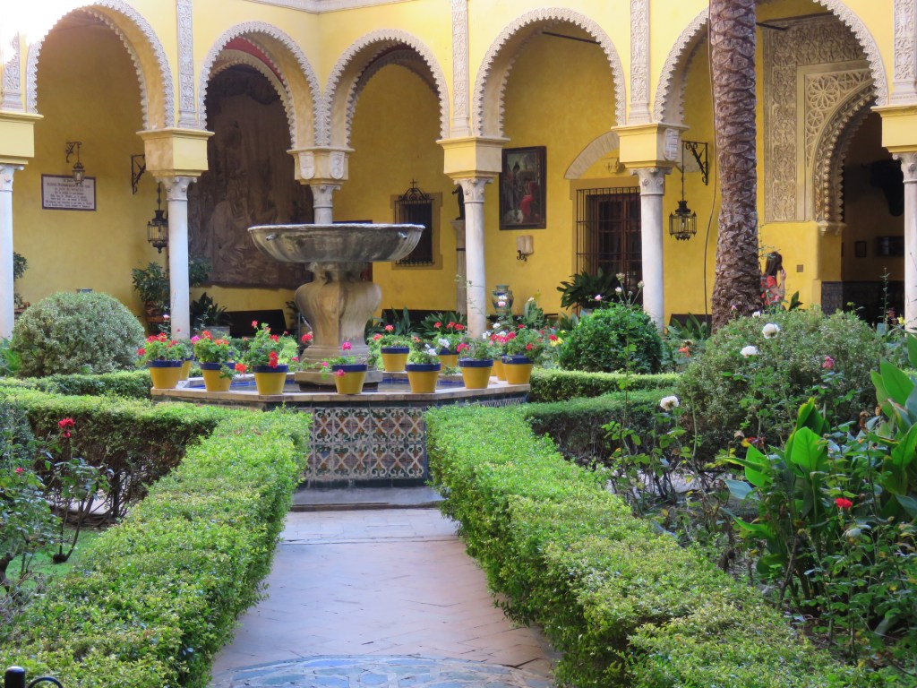 Vi besökte ett av de många palats som finns i Sevilla, Las Duenas. Många av dom är privata. Las Duenas byggdes i slutet av 1400-talet i renässansstil med gotiska och moriska influenser. I dag är undervåning ett museum och över våningen privat. Museet var fullt av vackra saker, fotografier, gobelänger, mattor mm. Huset hade en vacker park och innegård med vackra blommor. Fantastisk och vackert hus med många fina detaljer.