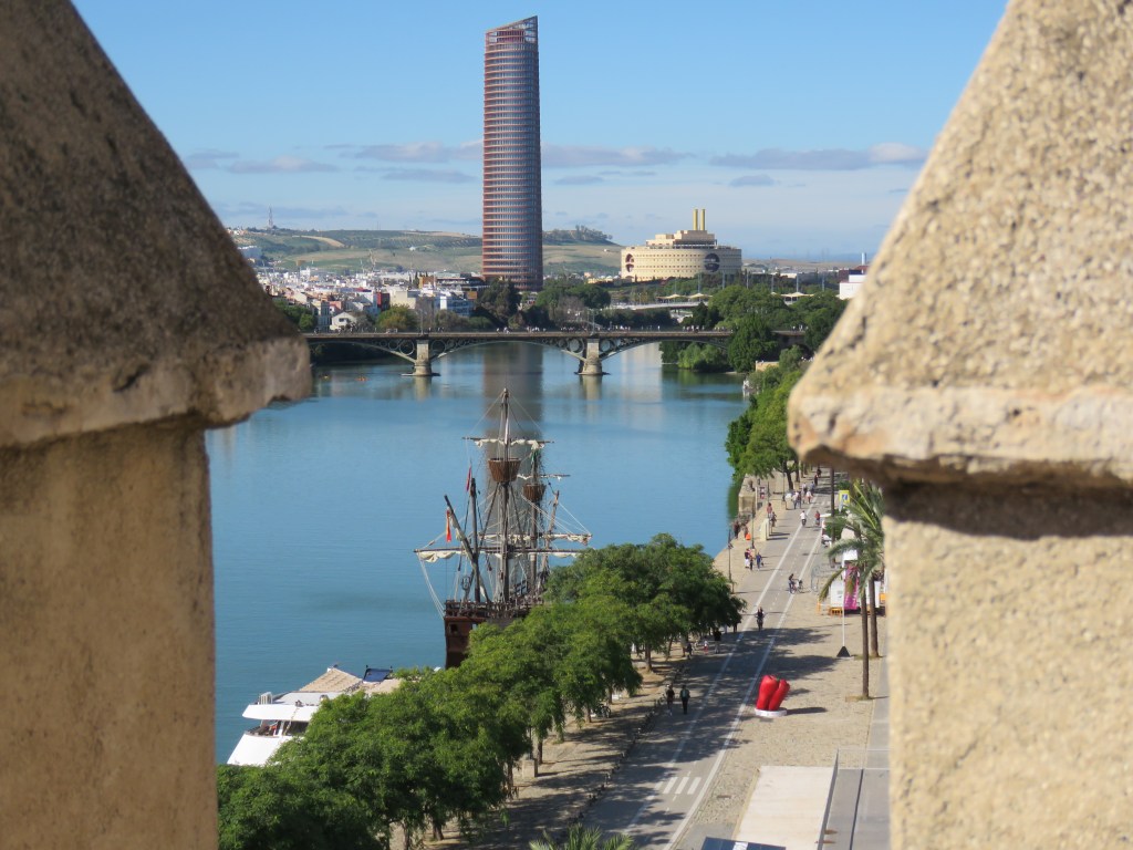 13 oktober gick vi en bit upp i floden Guadalquivir och lade oss på ankare. Floden är näst längsta floden i Spanien och den längsta i Andalusien, 657 km lång. Floden var lika tråkig som Göta älv. Det var inte mycket att se det var bara transport sträcka till Sevilla. Dagen efter tog vi det lugnt och gick den sista biten en liten bit förbi slussen och lade oss för ankare. Tidigt på morgonen nästa dag hade hamnen bokat slussen och bro öppning för oss. Det var en mindre segelbåt med 2 grabbar och ett större fartyg som vi gick tillsammans. Slussa och slussa det var inte stor nivå skillnad. Vi lade till i hamnen Club Nàtico Sevilla. Hamnen är en mycket aktiv hamn med 3 simbassänger, det tränas stora som små med roddbåtar, kajaker, tennisbanor och mycket mer. Det finns även gym och man har också tillgång till de olika klasserna som pilates, vattengymnastik mm. Hamnområdet är mycket grönt och trevligt även personalen är trevliga. Innan vi bestämde för Sevilla hade vi funderat fram och tillbaka var vi skulle ha vintervila. Vi visste att vi ville vara en längre tid i en hamn för vi har en del saker som vi vill ha gjort på Tindra och närheten till en större stad med parker och inte långt i från till sevärdheter. Vi ville träffa våra vänner i San Pedro del Pinatar och Torrevieja. Samt att det finns 4 intressanta städer utanför Sevilla som vi är intresserad av som vi ska försöka komma till. Till sist så blev det Sevilla. Sevilla är fjärde största stad. Sevilla grundades som den romerska staden Hispalis och är omkring 2 200 år gammal. Sevilla är också fylld av apelsinträd. Det sägs att apelsinerna kom från Asien och togs hit från Venedig. Det sades också att det medförde lycka till dess ägare. Det var därför muslimerna planterade apelsinträd runtom Andalusien. Apelsinerna är mycket beska för träden får bara tillräckligt med jord för att blomma och ge frukt som används till marmelad. Från november till februari börjar apelsinerna mogna och det plockas en miljon kilo apelsiner. På våren mars, april blommar apelsinträden det är fullt av vita blommor och det ska visst lukta ljuvligt. Vi får se om vi kan få känna lukten av apelsin blommorna innan vi lämnar Sevilla. Allt tas till vara det blir oljor, tvål mm.
