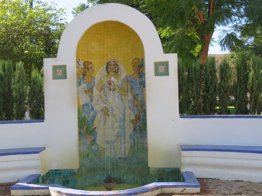 Vi har strosat runt i parken Maria Luisa, den ligger inte så långt i från marinan. Parken är jätte fin grön, lummig park med ett härlig ljus. Här kan du vandra i timmar och se fontäner, bänkarna av kakel, en välskött park och parken förgrenar med platser som ex. plaza de Amèrica en vacker plats med fontän, där hästar med vagnar som står och väntar för att köra runt turisterna i den gamla delen av Sevilla. Mellan katedralen och palatset Alcazar finns det många gator, smala gränder och jätte fin arkitektur, små fina detaljer på husen. Här nedan finns det några bilder på våra upptäcktsfärder. Det blir många tiotusentals steg när vi går på våra upptäcktsfärder i Sevilla. Däremellan tar vi hand om vårat hem det ska tvättas, handlas och städas. När vi går i väg för att handla och tvätta försöker vi gå olika vägar för att se vad som finns runt hörnet. Vi har fortfarande mycket att upptäcka och se. Vi har också börjat simma och det ska vi försöka göra 2 gånger i veckan. Vi har våra obligatoriska fredags drink med vännerna hemma, digitalt.