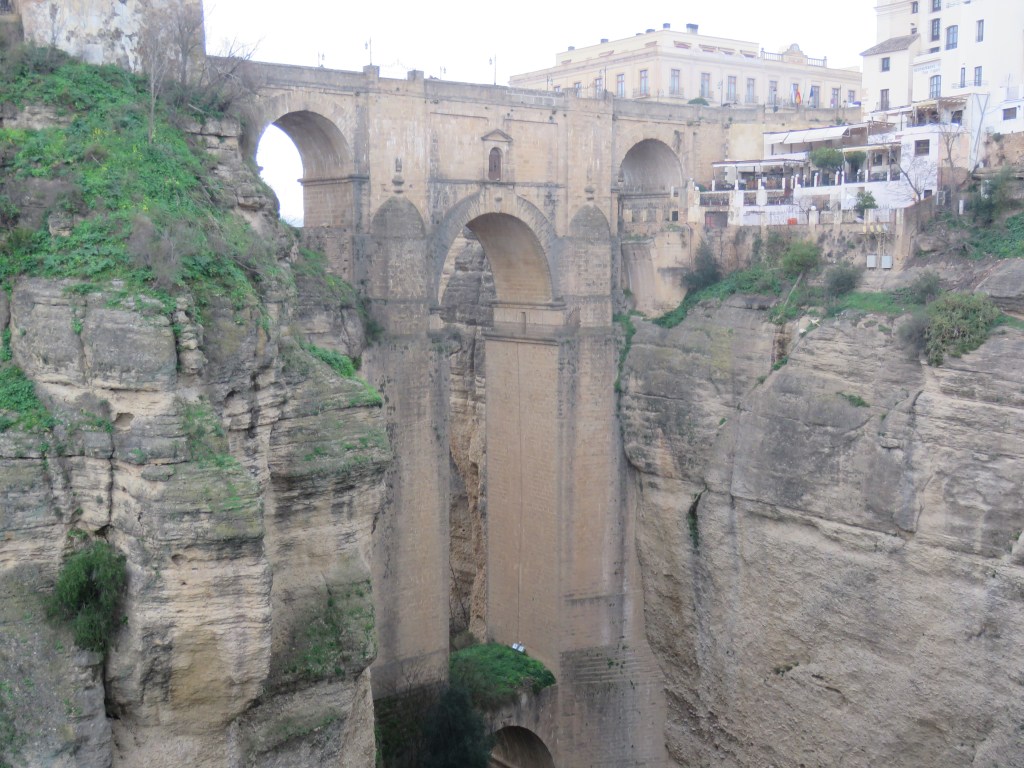 Vi lämnade Jerez de la frontera, här fanns mycket att se men vi valde Alcazár och efter vi hade besökt Alcazár och promenaden runt i staden så fortsatte vi till Ronda. Ronda är en av Spaniens äldsta städer som delas av en 120 meter djup ravin. Det är tre broar som leder över ravinen, en romersk som byggdes för mer än 2000 år sedan, en morisk kallad Puente Arabe samt en som påbörjade 1751 och som blev klar 1793 som kallas Puente Nuevo. Vi checkade in på hotellet som var billigt men rent och trevlig personal. Vi vilade en stund och sedan gick vi ut i den ljumma kvällen. Vi började att promenera runt Ronda och avslutade kvällen med god mat och dryck. Dagen efter fortsatte vi att strosa runt och besökte kyrkan/katedralen Santa Maria la Mayor, bron Puento Nuevo och mycket mer. Här är också historian mycket intressant och går jätte långt tillbaka i olika tidsåldrar. Ronda ligger högt på en kulle och blev känd som ”örnnästet”. Det fanns medveten ironi i namnet.