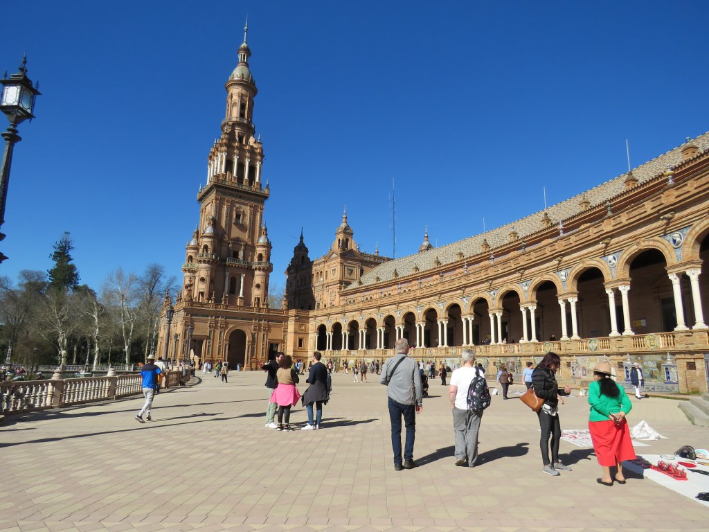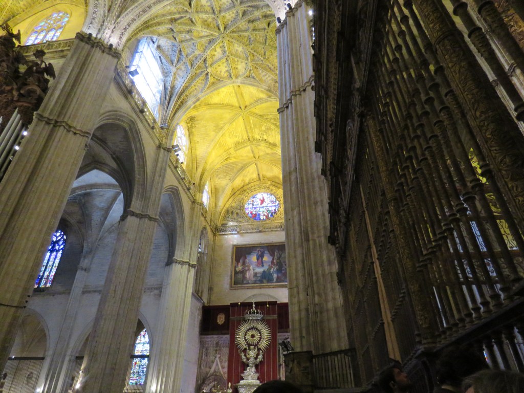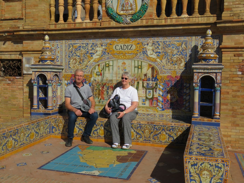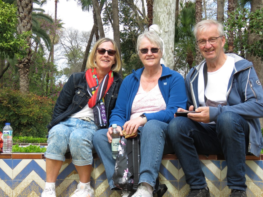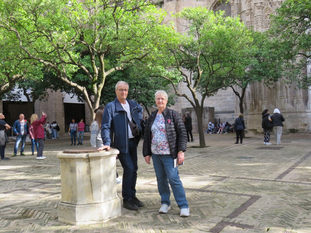 VI FÅR BESÖK; Efter road trippen så fixade och förberedde vi inför Ingers besök. Vi träffade våra grannar och vi tog promenader till den fina parken Maria Luis. Här hade våren kommit med fågelungar och apelsinträden hade börjat blomma och luktade mycket. Vi var även på Ikea och shoppade loss. Vi hade fått ett presentkort i julklapp av Jossan och Fredrik på Ikea. Det blev bl.a. nya påslakan, ny kran till toan som hade rostat sönder, prydnadskudde, lykta mm. Inger kom och vi fick underbara, mysiga dagar. Vi visade Sevillas skatter. Vi hade sparat området Macarena med kyrkan Hermandad de la Macarena den är så vacker, katedralen Santa Maria de la sede, Royal Alcázar of Seville. Vi hade guidade turer i katedralen med tornet Giralda och Alcázar. Katedralen är en romersk-katolsk katedral och officiella namnet är katedralen de Santa Maria de la Sede. Den är den största gotiska katedralen och den är största kyrkan i världen efter Peterskyrkan i Rom och St. Pauls katedralen i London. Katedralen byggdes på platsen där en gång en morisk moské byggd som togs från morerna 1248 och använde sedan som katedral. Katedralen stod färdig början av 1500-talet och är också begravningsplatsen för Christopher Columbos. Klocktornet Giralda som är 104 m, med en jordbävning slutet av 1300-talet förstördes de fyra förgyllda bronskulor längst upp och ersatte med klockor och fick en tornvindflöjel, giralda som betyder ”att rotera”. Tornet har inte trappor utan ramp, 35 stycken så att man kunde ta sig till toppen på hästryggen. Vi gick ända upp det var vidsträckt utsikt över Sevilla. På toppen av tornet Giralda står en 4 meter hög bronsstaty. Denna staty som betyder tro och som även kallas Giraldillo.