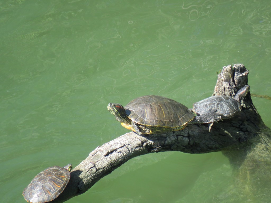 SKÖLDPADDOR SÅG VI HÄR OCH DÄR LÄNGS FLODEN I SEVILLA.