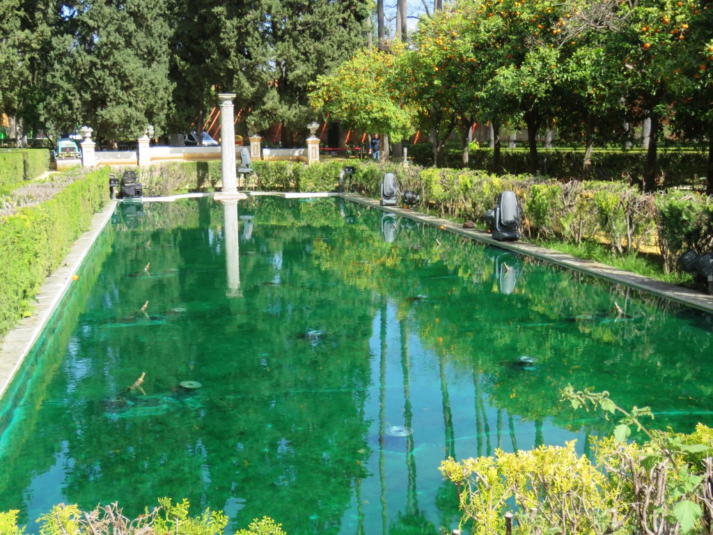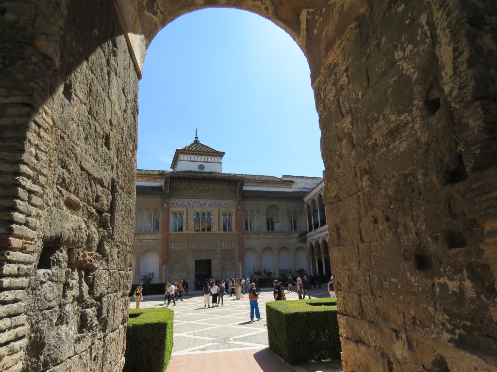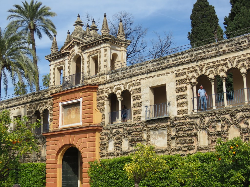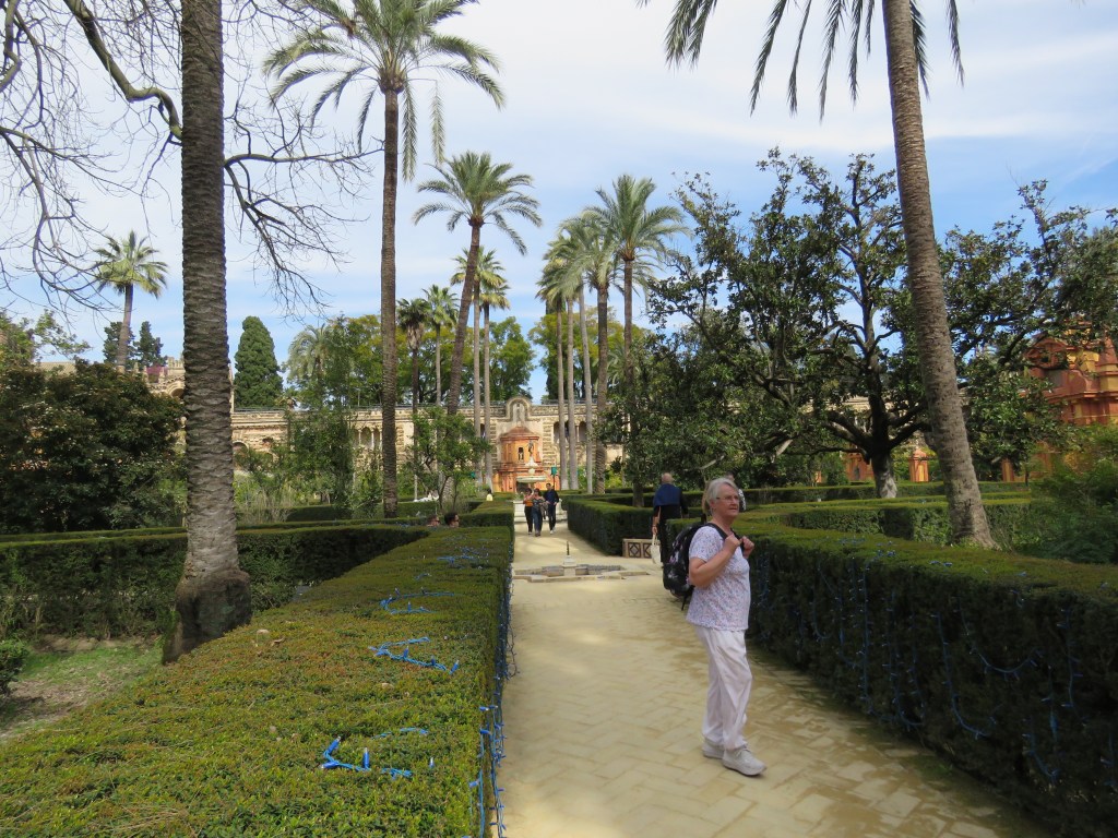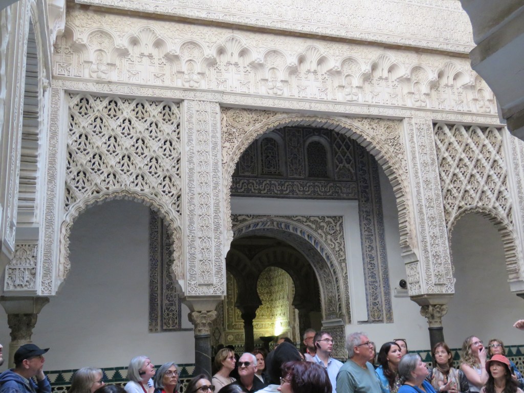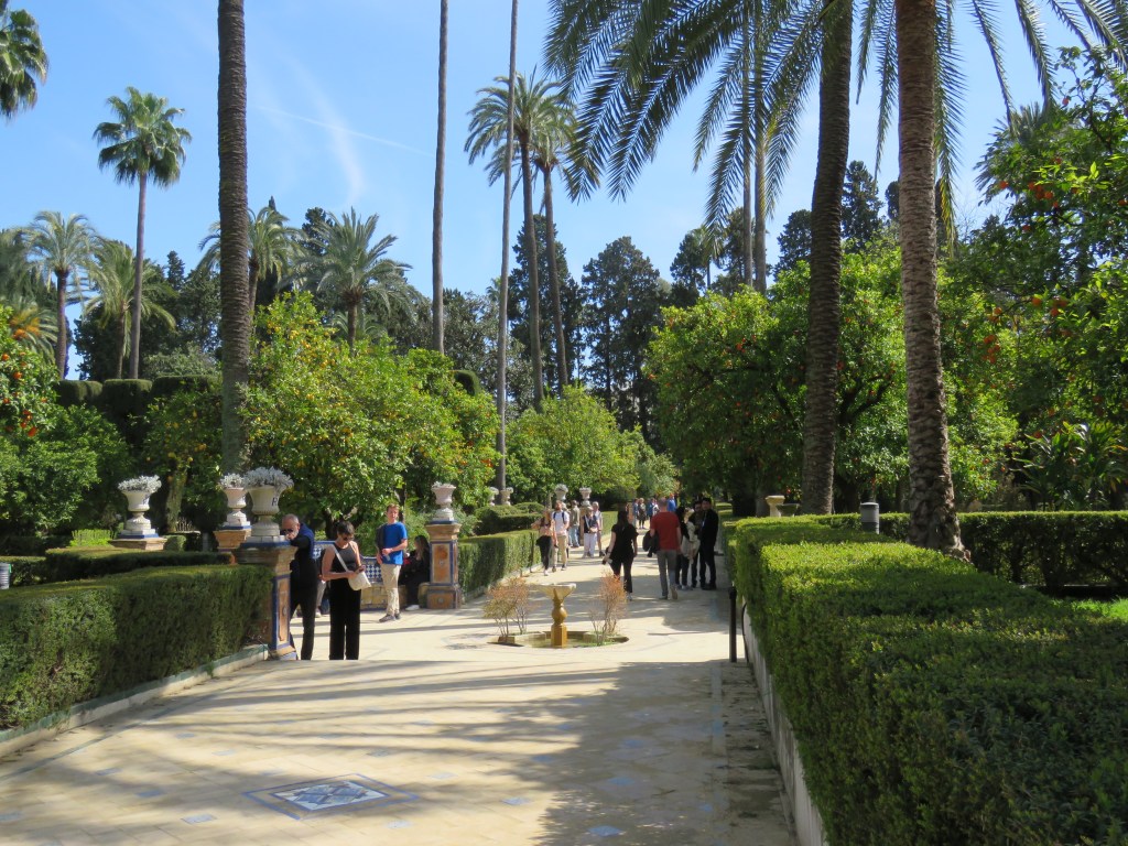 Vi hade också en guidad tur i Alcázar kallas också Royal Alcázar och är ett historiskt kunglig palats i Sevilla. Från början på 900-talet var det stadens citadell och sedan utvecklades till ett större palats. 1248 byggdes det succesivt om och ersattes av nya palats och trädgårdar. 1987 registrerade palatset av UNESCO som ett världsarv. Palatset är också känd för sin kakeldekoration. De två kakeltyperna är majolika- och arista-platto. De arista-plattorna är den gröna stämplad och varje kakelsegment har upphöjda åsar och majolika kakelplattan utvecklades början av 1400-1500-talen där det fanns möjlighet att måla direkt på keramiken som är täckt med vita ogenomskinliga glasyren. Palatset var enorm och mycket vackert med dess trädgård. Palatset har byggds om, rekonstruerat och modifierat efter de olika tidsepokerna. När den guidade turen var över gick vi runt i den fina trädgården sedan satte vi oss och åt glass.
