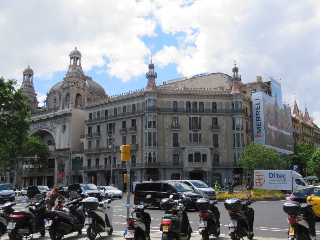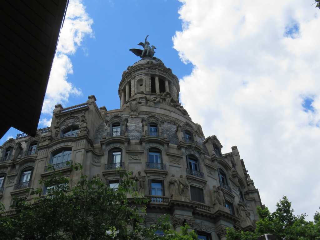 Vi vände och gick ner för kullen till nästa hållplats och hoppade på bussen igen. Vi åkte till Placa de Catalunya. Vi satte oss ner på en bänk och åt våran matsäck. Var man än tittade så var det vackra hus en otrolig arkitektur och jätte fina statyer. Här kan man säga att man är i centrala delen av Barcelona.