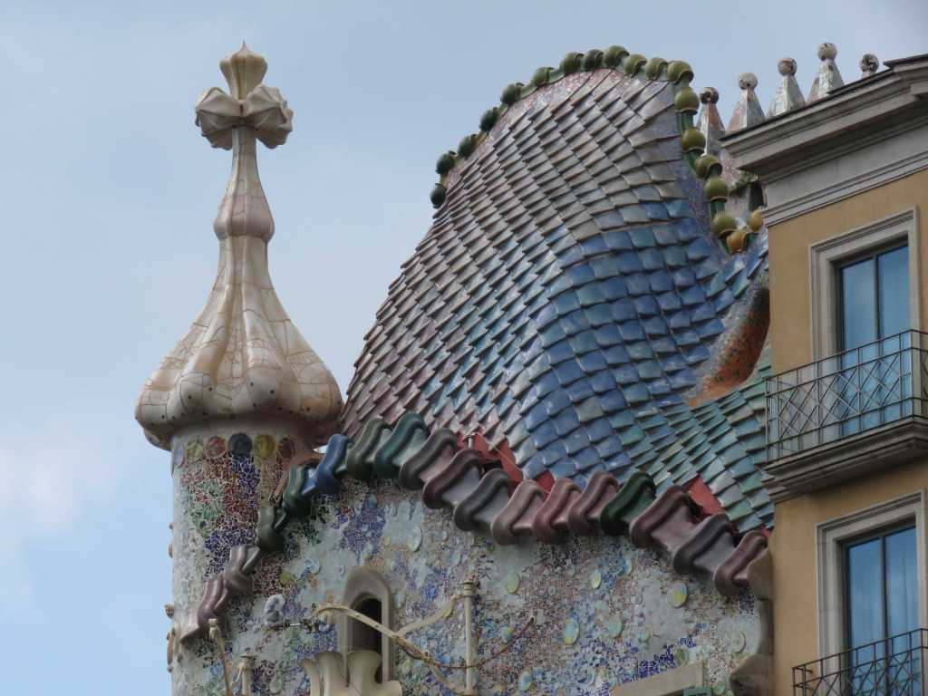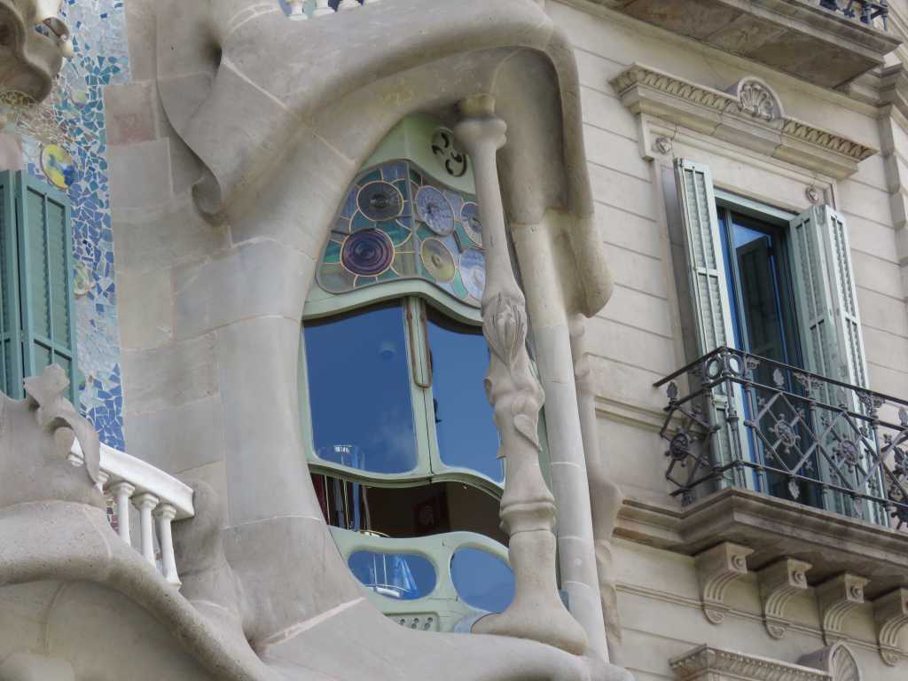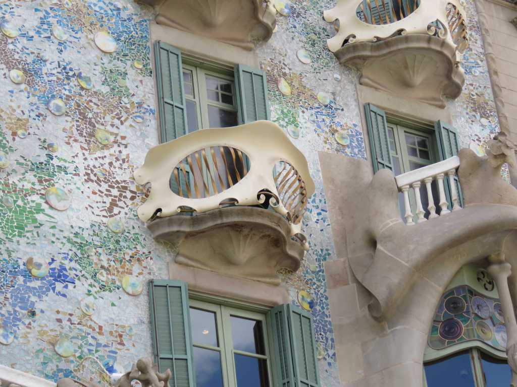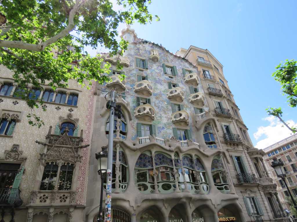 Härifrån promenerade vi mellan alla gator och hus till den stora affärsgatan med alla dessa märkesaffärer ex. Versace, Nike, Boss mm. Vi såg Casa Batlló som är en byggnad designade av Anton Gaudi, helt i stil med katalansk moderism. Husets former är baserade på legenden om George och dragen. Det var vackert med detaljerna, färgerna och mosaikerna. Det anses vara ett av hans finaste mästerverk.