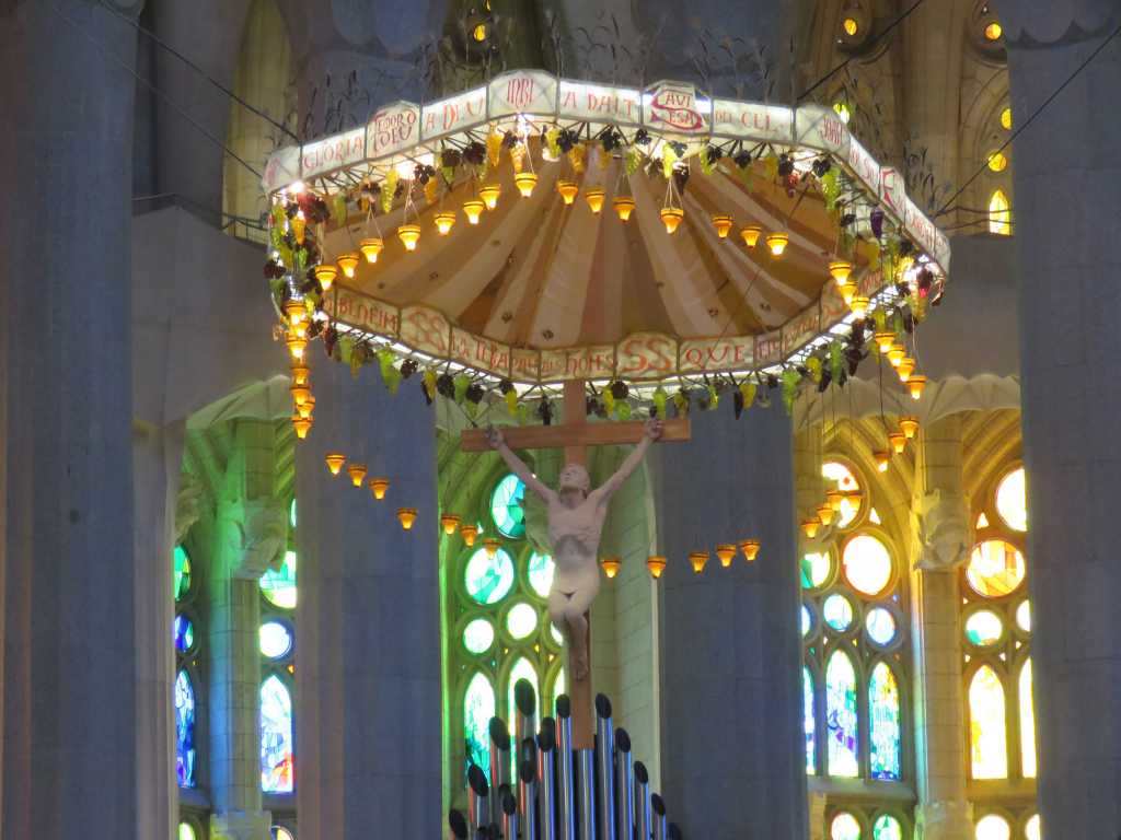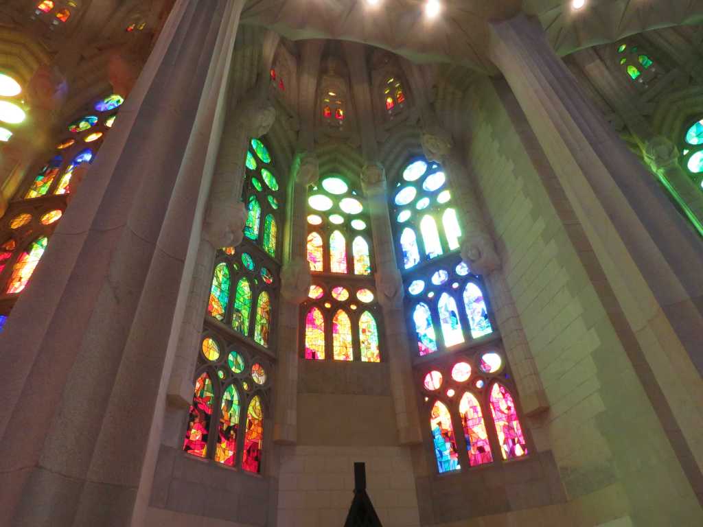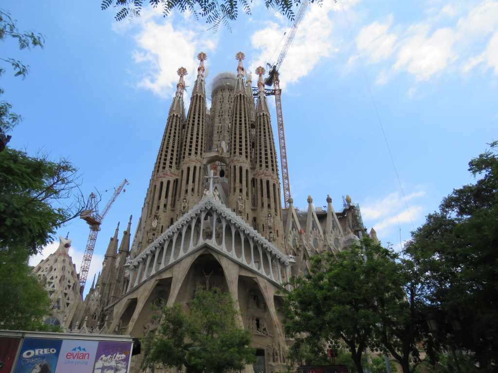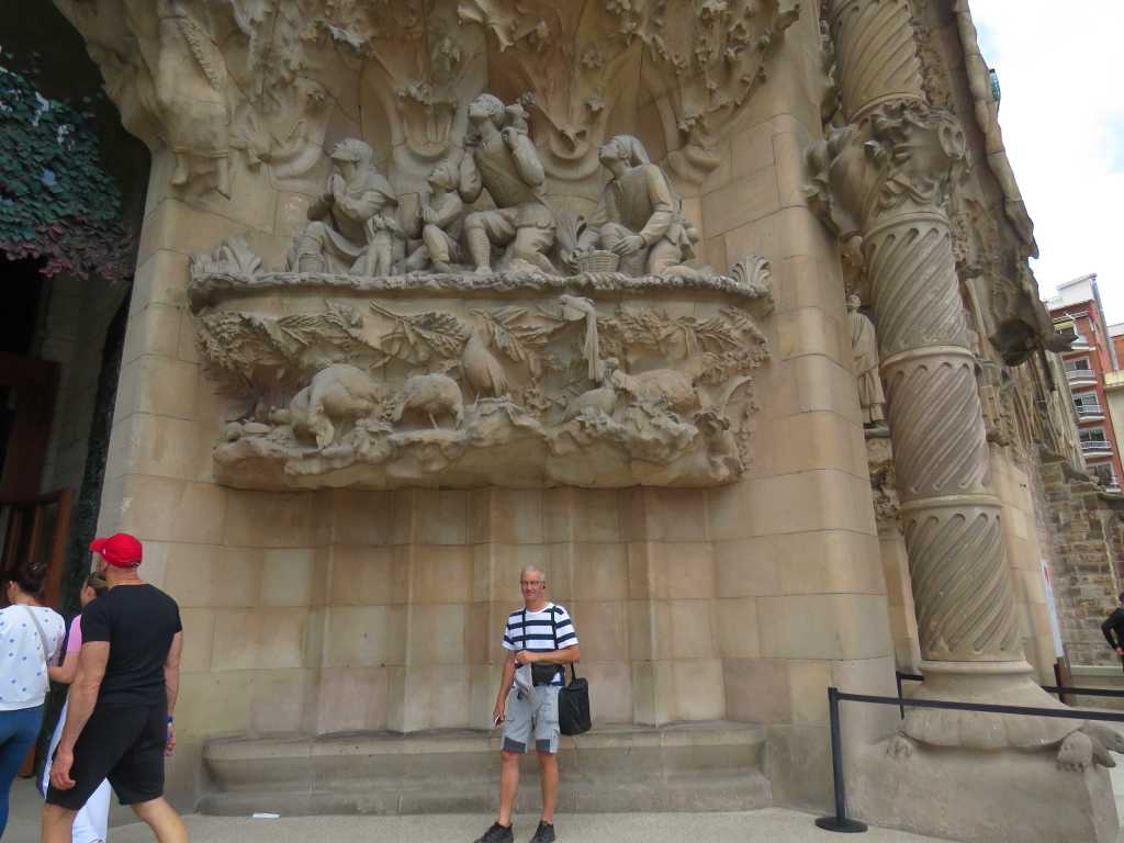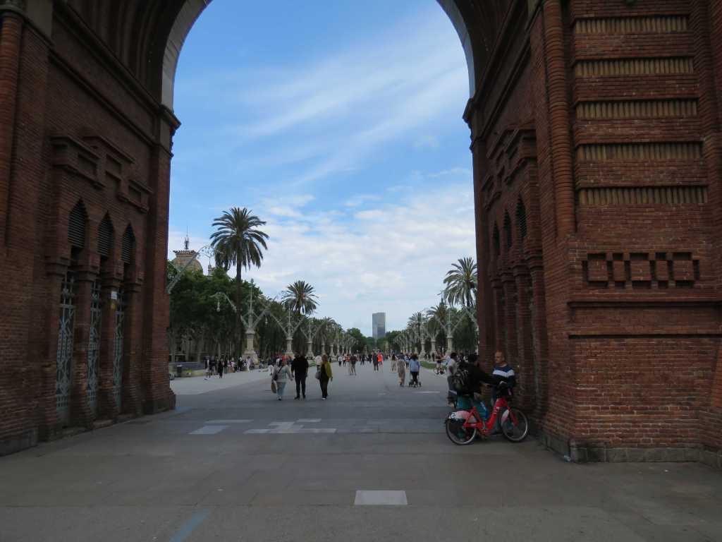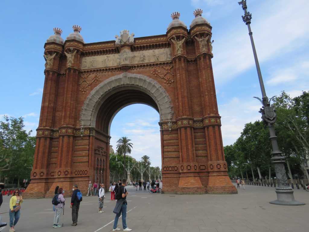 DAG 2, Onsdag 22 maj hade vi biljetter till Sagrada Familia. Den är en fantastisk, spännande byggnad, tempel av arkitekten Antoni Gaudis arbete, 1852-1926. I dag efter mer än 135 år efter den första stenen lades är den fortfarande under uppbyggnad. Det är många, många fina detaljer och budskap. Gaudi är också begravd här. Vi besökte även ett av tornen. Efter besöket fortsatte vi till Triumfbågen Arc de Triomf. Den byggdes för Barcelonas världsutställning 1888. Här var det också många fina detaljer. Här strosade vi runt och avslutade med att promenera en del av gotiska kvarteret, Barri Gótic. Här finner man smala medeltida gator en labyrint av gränder. Ett mycket vackert kvarter. Vi tog tåget tillbaka till Tindra och utanför hamnen gick vi på restaurang.