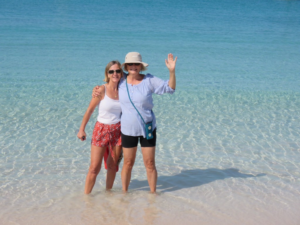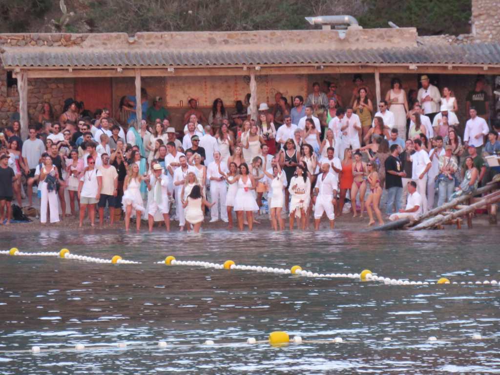 Sista kvällen, tisdag den 28 maj avslutade vi med dom andra att åka in till land och åt pizza. Wind skulle till Mallorca och vi med Andante skulle fortsätta till södra Ibiza till en ö norr om Formentera, Bahia Espalmador. Vi seglade den östra sidan och vi lade oss på boj nära stranden. Vilken strand, vi fick Karibiska känslor med kristallklart och azurblått vatten med en jätte lång vit sandstrand som skimrade rosa. Här låg vi i tre dygn. Vi promenerade på stranden och till saltvatten lagunen, träffade hos varandra, spelade sequence, åt och drack gott.