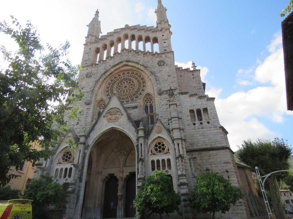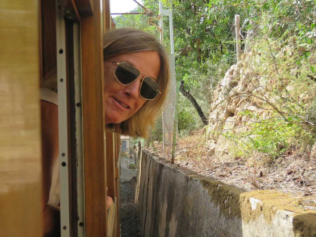 Vi fortsatte till port de Sòller. Här var det ännu värre med båtar på ankare. Precis när vi hade fått ner ankaret så kom de fallvindar och började blåsa som skam. Så klart att vi draggade, ankaret hade inte hunnit fastna ordentligt. Det var bara att börja om från början. Dagen efter hade vi hamnplats i tre dagar. Det kändes bra när vi skulle göra utflykter. När vi hade förtöjt i hamnen tog vi bussen till Fornalutx för söndagsmiddag och efter strosade vi runt i byn. Det var en jätte mysig by. Först hade vi tänkt att vandra dit och ta bussen hem men det blev sent och ska man gå långt när det är jätte varmt vill man gärna komma i väg tidigt på morgonen. Vi hade läst att det skulle vara en mycket vacker vandring. Nästa dag tog vi bussen till Sòller och tåget även kallad ”apelsintåget” till Palma som invigde 1912 och byggdes för att transportera apelsiner mellan Sòller och Palma. Vagnarna är gamla antika med lädersäten och detaljer av mässing. Så charmigt!! Det var en fantastisk resa från Sòller vidare ut på landsbygden, förbi olivlundarna och upp i bergen. Så vackert!! I Palma fixade vi några saker och besökte klostret, strosade runt i gamla stan och avslutade med restaurang efteråt tog vi i stället bussen hem. När vi kom hem var vi jätte trötta, svettiga och ont överallt. Fast allt detta var vi jätte nöjda med utflykten. Nästa dag tog vi den gamla spårvagnen till Sòller och strosade runt. Besökte kyrkan Sant Bartomeu som byggdes på 1200-talet. En vacker kyrka. Det var också en vacker by. Vi gick mellan husen och vägen som gick uppför till en utsiktsplats som vi kunde se port de Sòller och Sòller. En vacker utsikt. När vi kom tillbaka till Tindra vilade vi och fixade middag. Efter middagen tog vi en promenad längs vattnet och avslutade med drink på en bar.