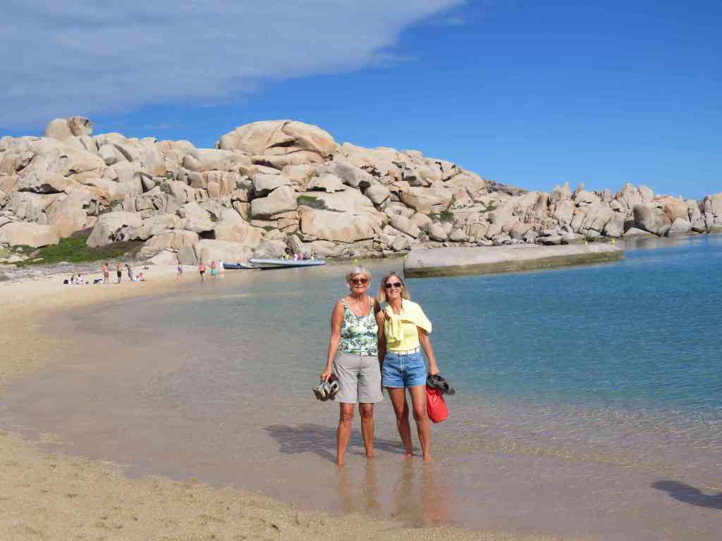 Vi fortsatte till Lavezzi öarna Sardinien. Det är en grupp små öar och rev belägna i Bonifaciosundet mellan Sardinien och Korsika. Detta område är naturreservat som är känd för sitt unika ekosystem och fantastiska klippformationer, granitklippor, klart vatten och vita sandstränder. När vi kom fram hängde regntyngda moln och det såg fullt ut längre in i viken. Det blev lite surmulet från mig och Lars. Vi hade sett framemot att visa Magnus och Sus den här speciella ön med dessa speciella klippformationer. Vi hade varit här för många år sedan och ville komma tillbaka. Vi blev säkerligen bönhörda plötsligt sprack det upp och solen kom fram. Det var också en båt som vi mötte som gick ut. Vi var inte sena utan vi gick in och såg att vi skulle få plats i det speciella utmärkta ankringsplats som var tillåtet att ankra. Vi åkte in med dingen tog en lång promenad, badade, hade en jätte fin dag och kväll.