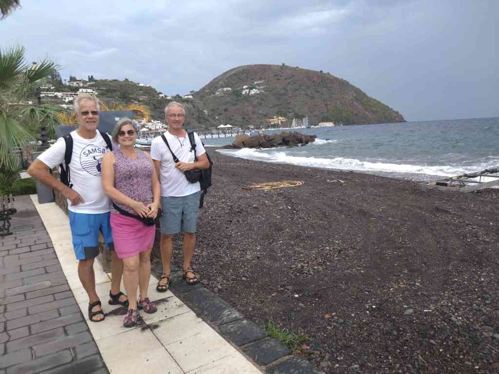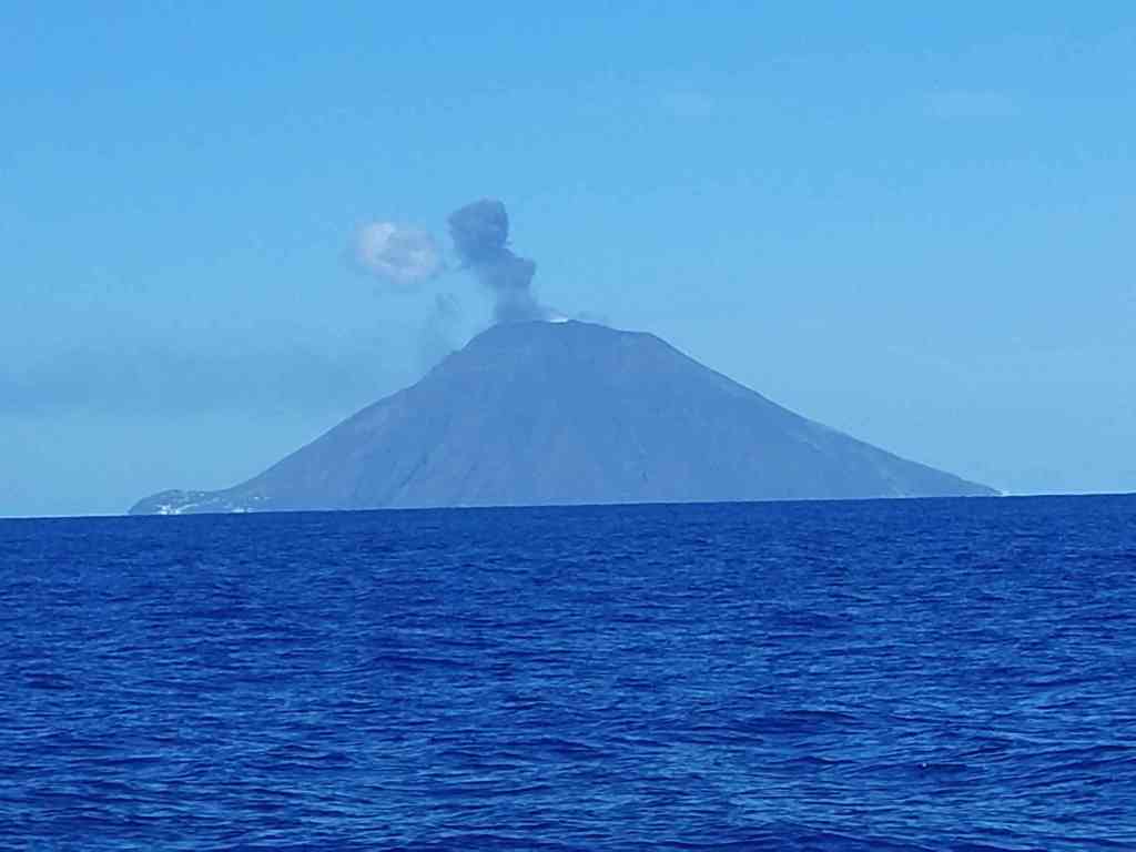 Vi studerade vädret de närmaste dagarna och det såg jätte bra ut. Vi ville gärna besöka de Eoliska öarna, eller Lipariska öarna som är en vulkanisk ögrupp i Tyrrenska havet, norr om Sicilien. De sju största öarna är Lipari, Salina, Vulcano, Stromboli, Filicudi, Alicudi, Panarea. Öarna Stromboli och Vulcano har aktiva vulkaner. Stromboli har en ständig aktivitet i form av explosiva men små utbrott som man kan se skenet långt i från när det är mörkt. Vulcano hade senaste utbrott 1888-1890. Vi besökte Lipari och Vulcano. Lipari är den största ön. Ön är långsmal och har en nord-sydlig riktning. Vi promenerade in till byn det var ca 15 minuter att promenera från hamnen till byn. Vi besökte katedralen Saint Bartholomew och slottet. Det var jätte vackert. Efteråt gick vi i väg för en paus. Vi hittade ett fik som serverade cannoli det är ett sicilianskt bakverk. Cannoli kan vara fylld med krämer så som ex. choklad, vanilj mm och det kan vara pistage strössel på i änderna. Vi valde vanilj. Precis när vi satte oss ner kom det ett rejält regnskur som var snabbt över men det gjorde inget. Vi satt under tak och njöt av kaffet och bakverket. Bakverket fick både tummen upp och tummen ner. Senare på eftermiddagen/kvällen gick vi till stranden som låg en bit från hamnen åt andra hållet än byn. Stranden hade svarta små sten, typiskt för en vulkan ö. Det gick större vågor men det var härligt att hoppa i. Första bilden ser vi Stromboli när vi seglade förbi som hade en liten explosiv aktivitet.