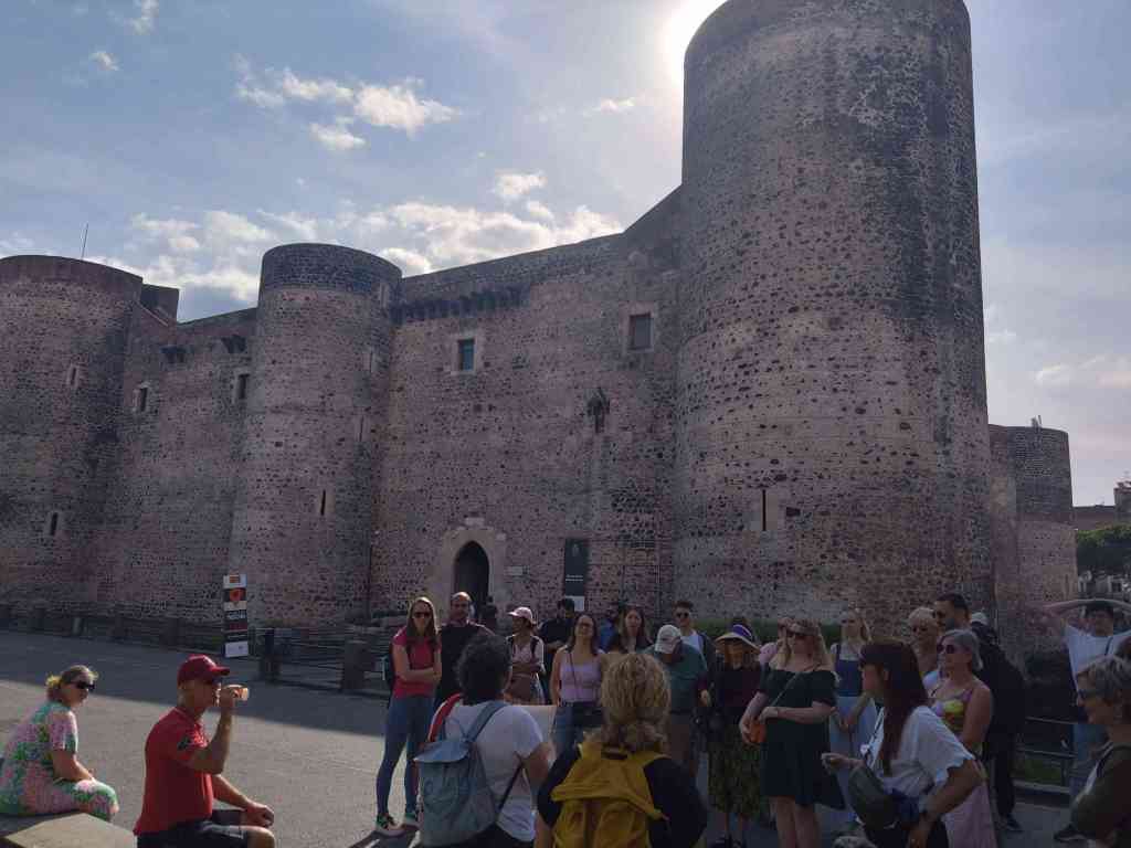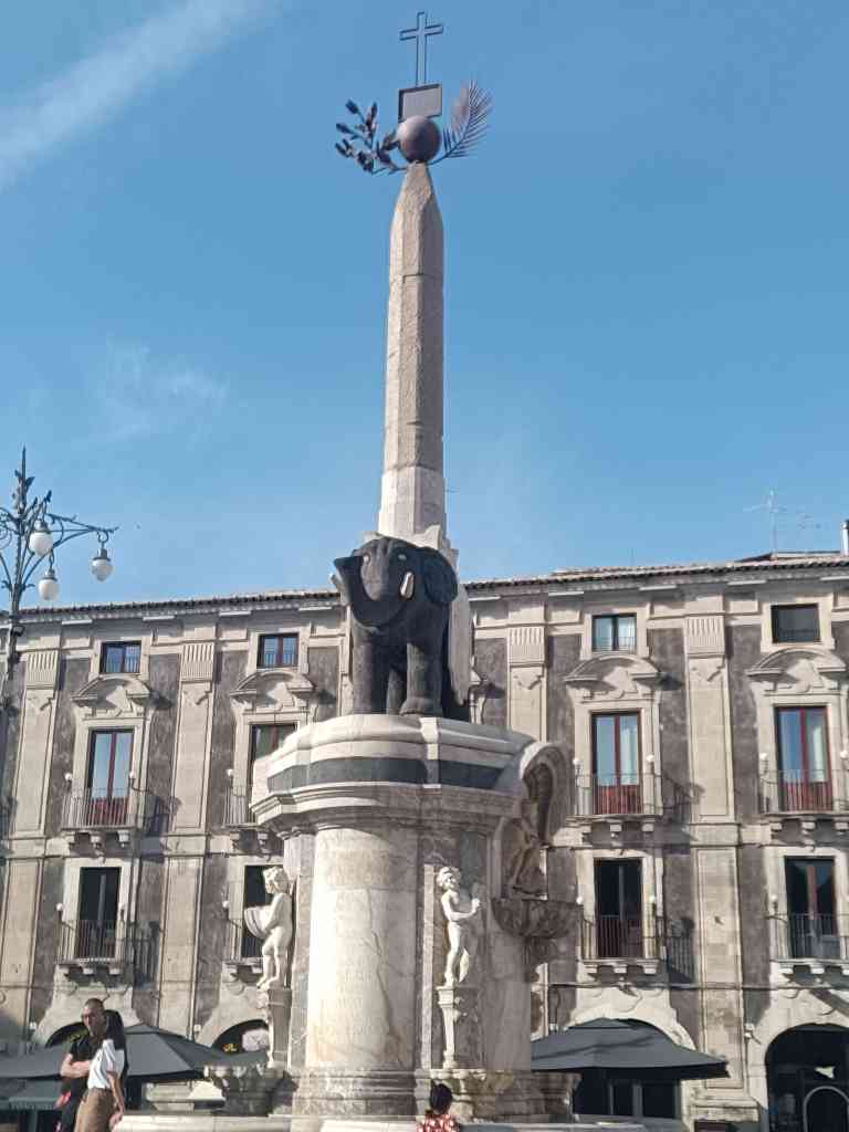 Efter Naxos fortsatte vi till Catania. Det kändes jätte tråkigt för det var slutdestinationen för Carina och Peter. Här i från skulle dom flyga hem. Hamnen var liten med några gäst platser och resten är för lokalbefolkningen och basic. Hamnen låg nära centrum och inte långt i från flygplatsen. Vi tog en promenad till stan på eftermiddagen. Samtidigt ser Carina och Peter på en av sociala medierna att deras vänner är i Catania. Dom skulle flyga hem nästa dag och vi skulle ha en bokad guidad tur. Vi bestämde att gå på restaurang på kvällen och träffa dom. Det blev en trevlig kväll. Nästa dag hade vi en guidad tur. Guiden var jätte bra. Catania är Siciliens näst största stad och den nionde största staden i Italien. Catania har en historisk stadskärna som UNESCO har beslutat att skydda dess arkitektur. Många hus är byggda under barockens tid. Catanias historia började 729-728 f kr som grundares av några bosättare från Naxos. Den guidade turen tog oss till torget O Liotru bredvid katedralen där stadens elefant symbol dominera, Teatern Massino Bellini, Piazza Universita, Fontänen med elefanten, fiskmarknaden, marknaden, monumentet Cardinale Dusment som beställdes för att hedra dess tidigare ärkebiskop och kardinal Giuseppe Benedetto Dusmet, 1818-1894 som beundrades för sin hängivenhet för de fattiga, romerska amfiteatern, Castello Ursino mm. Fiskmarknaden var lite makabert med blod och fiskrens direkt på gatan. Elefanten är stadens symbol som är gjord av lavasten. Legenden säger att elefanten skyddande Catania från onda andar och mot vulkanen Etnas utbrott. Efter den guidade turen gick vi tillbaka till de smala gatorna i marknaden och åt lunch. När vi kom tillbaka till Tindra kom ägaren till hamnen och sa att vi var välkomna till grillfest på kvällen. Vi blev jätte glada och vilket härligt avslut den sista kvällen. Nästa dag, tidigt kom taxin och hämtade Peter och Carina. Vi vinkade av dom. Tack Peter och Carina för dessa fantastiska dagar! ❤️Det har varit jätte roligt och mysigt. Tiden gick alldeles för fort. Vi hade tur med vädret inte mycket vind och bara några regnskurar. Vi fick en behaglig, lugn segling till de Eoliska öarna där hade vi också tur med vädret. Det blev check på bucket list!! Efter när vi hade vinkat av dom, vilade vi en stund och sedan plockade vi i hop. Vi lämnade Catania och fortsatte till våran vinterhamn i Licata. Catania är en fantastisk stad, mycket att se.