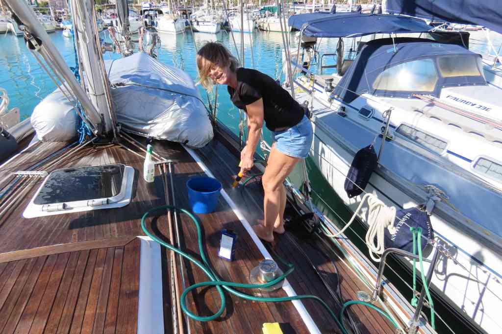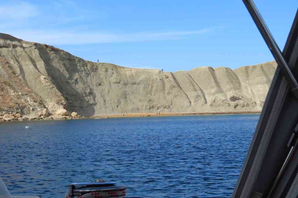 Efter dessa timmar i kyrkan tog vi bussen till Lidl och handlade. Sedan hem och städade för att kunna gå nästa morgon. När Lars skulle checka ut oss och betala, behövde vi inte betala någon hamnavgift för dessa fyra dygn. Jag ska berätta historien kort. Första dagen när jag och Anne-Beate skulle duscha hade vi knappast något vatten eller varmvatten. När vi gick tillbaka till Tindra mötte vi en av killarna som jobbade på marinan och jag klagade kanske lite överdrivet. Nästa dag gick Börje och Lars till receptionen och pratade med kvinnan som är bossen, hon sa att hon hade hört att jag var mycket upprörd och att vi inte ska betala någon hamnavgift. Det trodde vi inte riktigt på men det visade sig när Lars skulle betala att det var sant. Det var mycket generöst. Hamnarna här på Malta är dyra omkring 800 kr/dygn och uppåt. Vi seglade till två vikar på Maltas sydöstra sida och västra sida. Det var jätte fint. Sedan kom det ett jätte bra väderfönster som skulle ta oss tillbaka till Licata fast vi ville gärna stanna några dagar till, men vi ville inte missa detta tillfälle. Vi kunde segla nästan hela vägen. Varför seglade vi tillbaka till Licata? Jo, här i Licata kan man få en gratis månad om man är medlem i SXK. Det hade vi inte utnyttjat och vi hade några saker som vi ville ha gjort innan vi seglade vidare. Under dessa nästan tre veckor bytte vi rutorna i kapellet, städade de sista lådorna, tvättade en massa och mycket mera. Vi hade också roligt med de som var kvar i marinan det var barbecue med kubb och Blue sky bar. Jag hann också med några yoga pass. Det var också en sommarfest i Licata, hela stan var i feststämning. Vi såg en hästparad och det var en åsna som var med. Dom var jätte fina utsmyckade med fantastiska och färggranna plymer. Vi lämnade Licata och siktade på att vi skulle ta oss snabbt till klacken på Italien för att hinna träffa syrran Lisa och Stefan för dom hade fått några dagar ledigt och skulle söderut från Pescara.