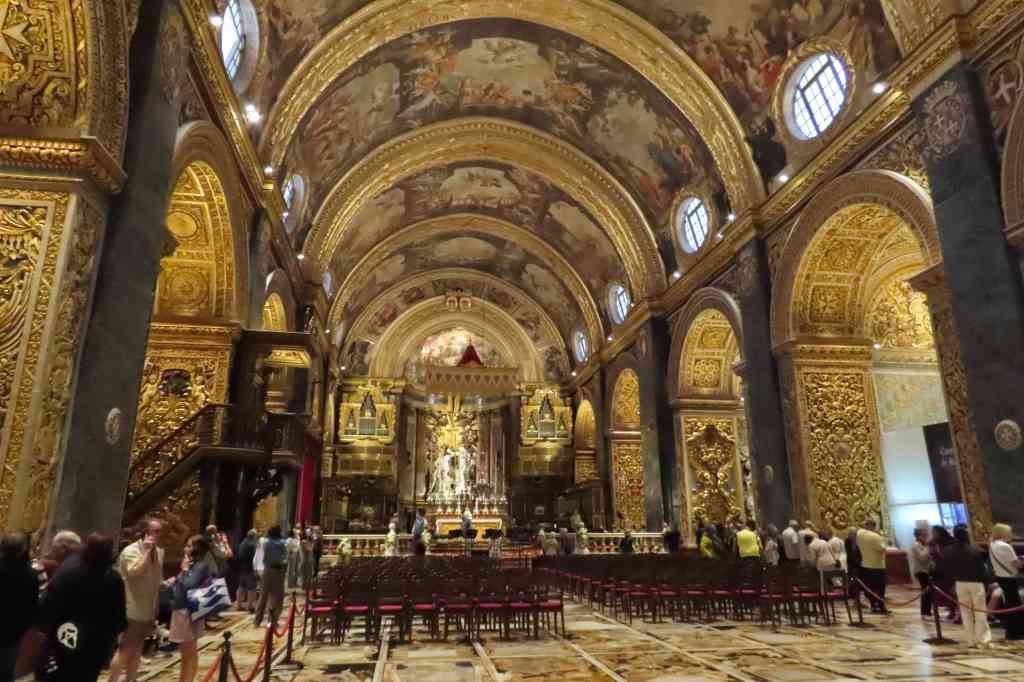 Efter vi hade vinkat av Anne-Beate och Börje och vilat oss, tog vi bussen in till Valetta och gick till katedralen St. Johns ”samkatedral”. Katedralen är en symbol för maltesisk barock, den är full av motiv som är av guld och marmor och många konstverk. Helt enastående och vacker. Den är tillägnad till Johannes Döparen. Byggd mellan 1573 och 1578 av Johannesorden (samkatedral). Katedralen består av ett mittskepp och åtta sidokapell som symboliserar de olika språk som talas av orden. Det spännande och fina är marmorgolvet som är gravar för de 400 kroppar, riddare som miste sina liv under belägringen 1565 och deras hjältedåd finns inristade på golvet. Katedralens exteriör skadades lätt under andra världskriget men undkom från total förstörelse och katedralens innehåll hade flyttats så inga konstverk gick förlorade. Under 1980-talet och till 2017 har katedralen restaurerat exteriört i olika perioder.