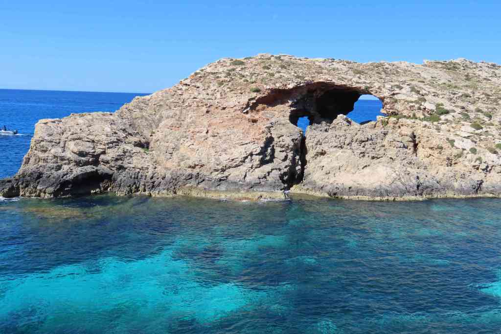 Vi lämnade Gozo här passade vi också på att tanka, det var jätte billigt cirka 13 kr/l och därefter gick vi till ön Comino, blå lagun. Här kunde vi inte vara mer än en natt, det var så mycket turbåtar. Nästa morgon flyttade vi till andra sidan, blå lagun, södra. Här låg vi bra. Vi badade, åkte dingen in i grottorna, promenerade på den lilla och stora ön. Comino har fått sitt namn från spiskummin.