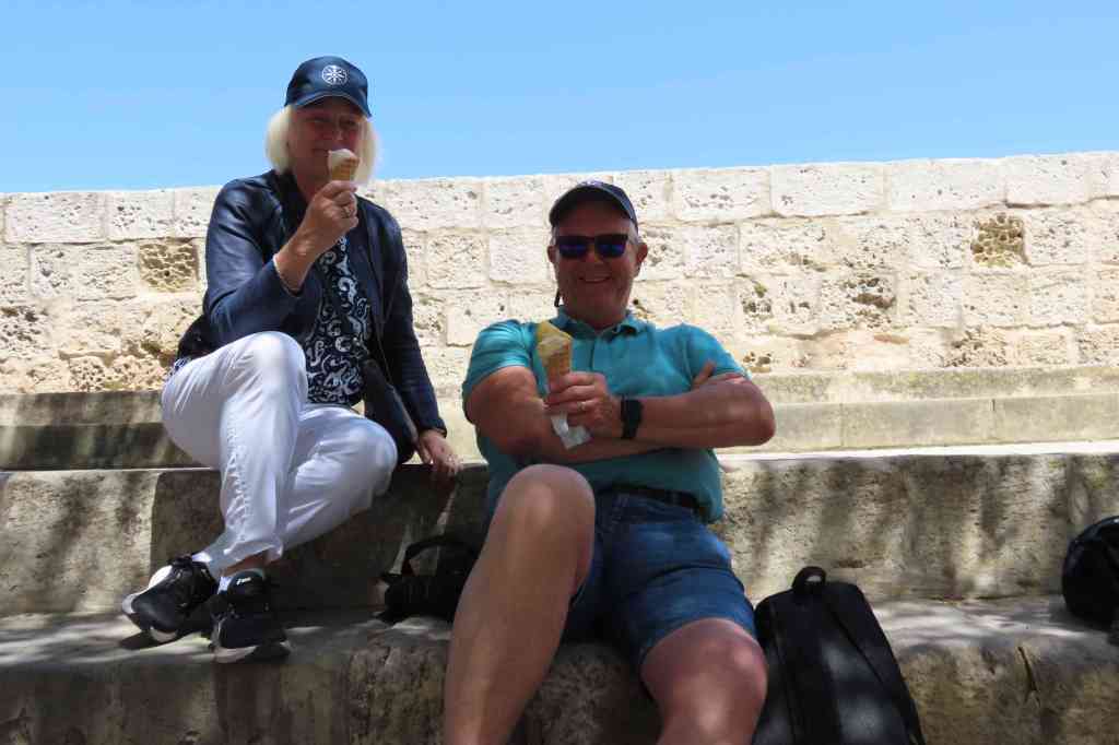 Sista dagen hade vi bokat en guidad tur i Valetta. Staden grundades 1566. 1980 förklarades hela staden som ett världsarv av UNESCO. 1566 började Valetta att byggas och blev samtidigt huvudstad. Malta är en av de minsta och mest tätbefolkade staterna i världen. Landet har två officiella språk, maltesiska och engelska. Vår guide var mycket duktig i historia om Malta och Valetta. Det var mycket intressant att lyssna. Efter guidningen var vi så trötta och det värkte överallt så vi tog en Uber (Taxi) hem. Anne-Beate och Börje packade sina saker för taxin skulle hämta dom på natten kl. 04:00. Vi hade ost, kex på kvällen. Det kändes vemodigt att dom skulle åka hem. Vi hade gjort och sett jätte mycket under dessa tre veckor dom var hos oss. Tiden går alldeles för fort. Det är så roligt när familjen och vännerna hälsar på. Vi får dela, upptäcka, segla till platser tillsammans. Även vardagen så som handla, tvätta, laga mat mm. det är roligt att göra det tillsammans. Det känns alltid tomt när dom åker hem. Efter när vi hade vinkat av dom gick vi tillbaka till sängen i några timmar.