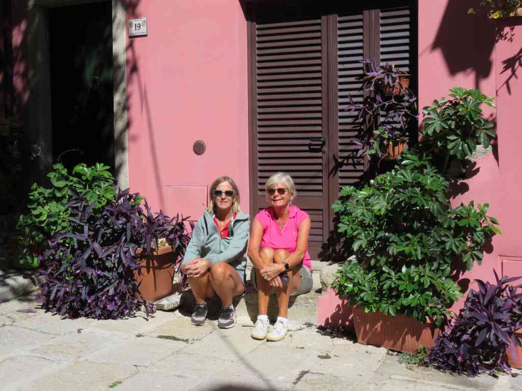 Vi kom tillbaka till Alghero trötta och nöjda med våra strandhugg. När vi checkade in hade redan vårat paket kommit med högtryckspumpen till Watermakern. Lars fixade Watermakern och den gick igen på 100% inte som tidigare 50%. Jag (C) gick till frissan och klippte mig och gjorde även en rejäl boost mot mitt torra hår. Jätte skönt. Vi strosade runt. Förberedde för våra vänner Magnus och Sus som skulle komma den 13 september. Vi studerar alltid vädret morgon och kväll när vi är på gång. När vi studerade vädret såg vi att det skulle komma en front med mycket vind och regn. Vi beslutade att vi går efter dessa fyra dagar som vi var i Alghero. Vi försökte boka hamnen längre in i bukten på norra sidan på Sardinien men fick inget svar. Vi försökte istället med den nordvästra hamnen, Stintino och där fick vi snabbt svar att vi var välkomna. Vi hade kvar att handla och det fanns en Lidle i den hamnen som vi försökte boka först, vi sade att vi får ta bussen dit. Vi rundade nordvästra hörnet, mellan Isola Piana och Fornelli. Det var lite spännande det var Ens linje som vi skulle följa. Enslinje är en förlängning av en rät linje som går igenom två märken på land, om man följer den räta linjen är man fri från grund och grunt vatten. Det var otroligt fint turkost vatten och vikarna som vi kunde se verkade vara jätte fina. Vi kom fram lagom till regnet och vinden hade ökat. Vilken tur vi hade. På kvällen tog vi en promenad till staden och åt glass. Dagen efter tittade vi på busstidtabellen och vi sade att det var bättre att hyra bil. Vi skulle tjäna på tiden och vi kunde hämta Magnus och Sus på flygplatsen i Alghero. Det skulle inte bli så mycket dyrare för dom än bussen som dom hade tänkt att ta. Vilken överraskning för dom när vi står på flygplatsen, Rengsjö limousin service. Vi hyrde bilen en liten Fiat Panda den 12 och 13 september. Dagen innan åkte vi väg och handlade på Lidle i den andra hamnen. Dagen D kom, Magnus och Sus landade på kvällen. Det blev så lyckat och dom blev jätte överraskade när vi stod på flygplatsen. Sedan blev dom mer överraskad när dom fick champagne i bilen. Det blev en rolig grej och lyckat. När vi kom tillbaka till Tindra så tog vi en promenad till själva staden Stintino.